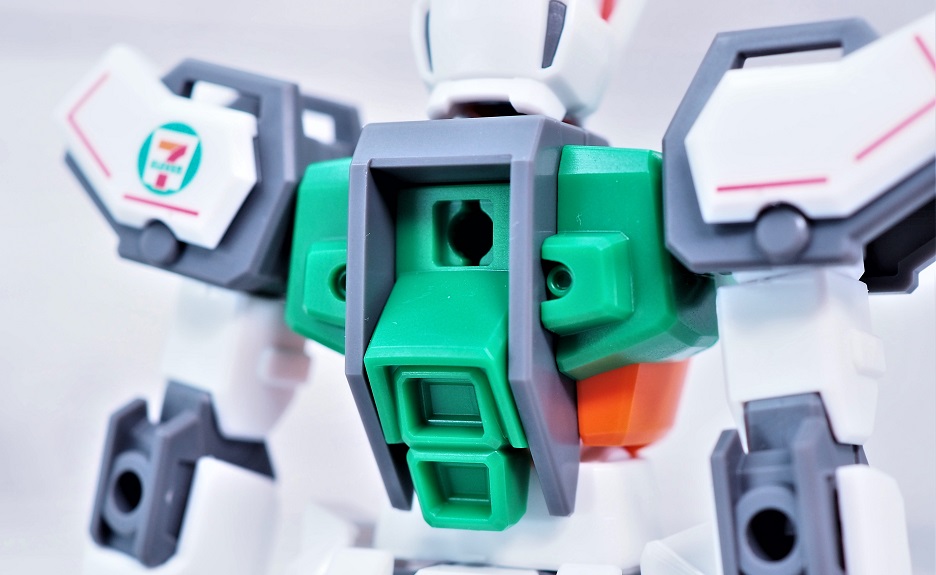 腕周りには赤いラインの追加、肩アーマーには堂々とセブンイレブンのロゴマークがデザインされています。
