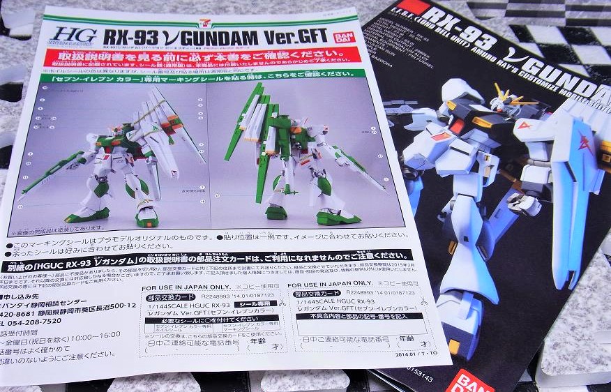 ガンダムフロント東京で発売された「νガンダム Ver.GFT」に付属しているマーキングシールとは違い、セブンイレブン独自アレンジされています。