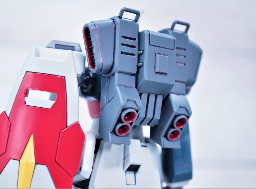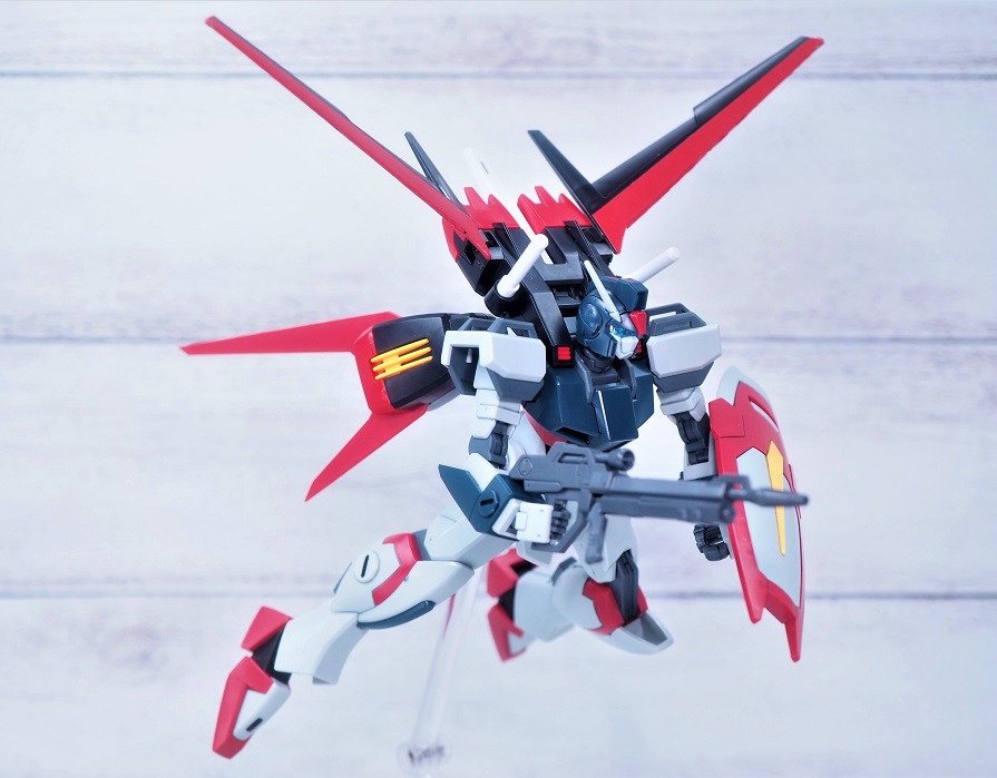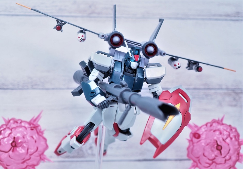 設定ではストライカーパックの装備は不可能ですが、プラモデルオリジナルの遊び要素としてこのようなカスタムが可能。