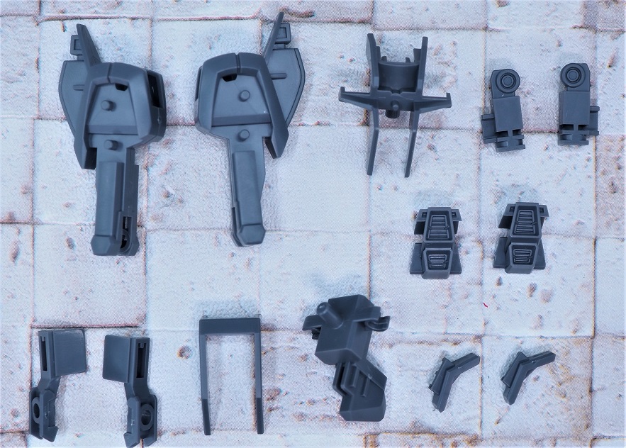 サイドアーマーのみ新規パーツ(サーベルラックが無いタイプ)でフロント、リアアーマーはダガーLと共通。