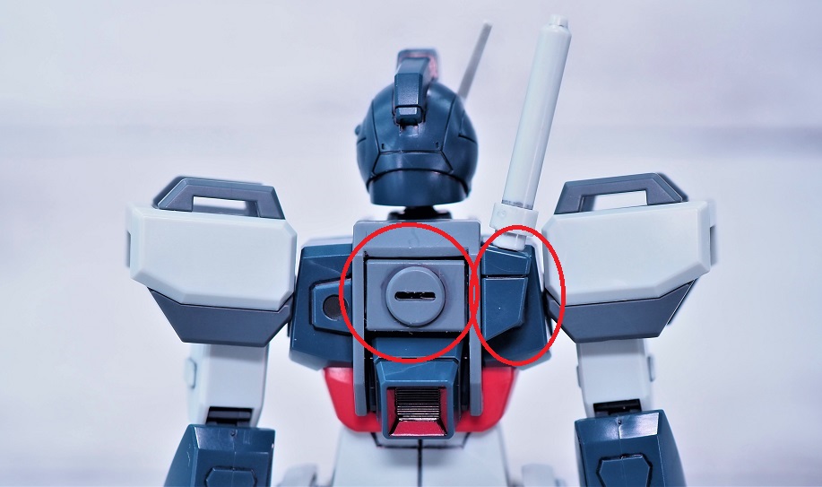 サーベルホルダーと中央の蓋を取り外すことで各ストライカー、パラシュートパックを背部に装備することが可能となります。