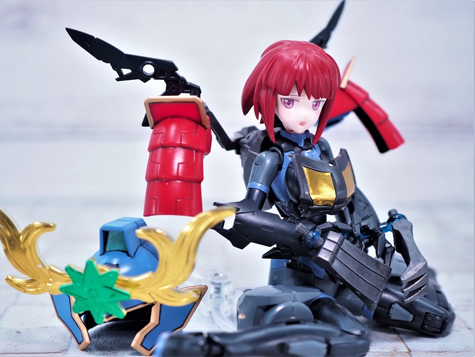 肩鎧は彗聖頑駄無の腕とガールガンレディのメイドアーマーに付属するアタッチメント、30MS付属のリングパーツを繋ぎ合わせて取り付け。