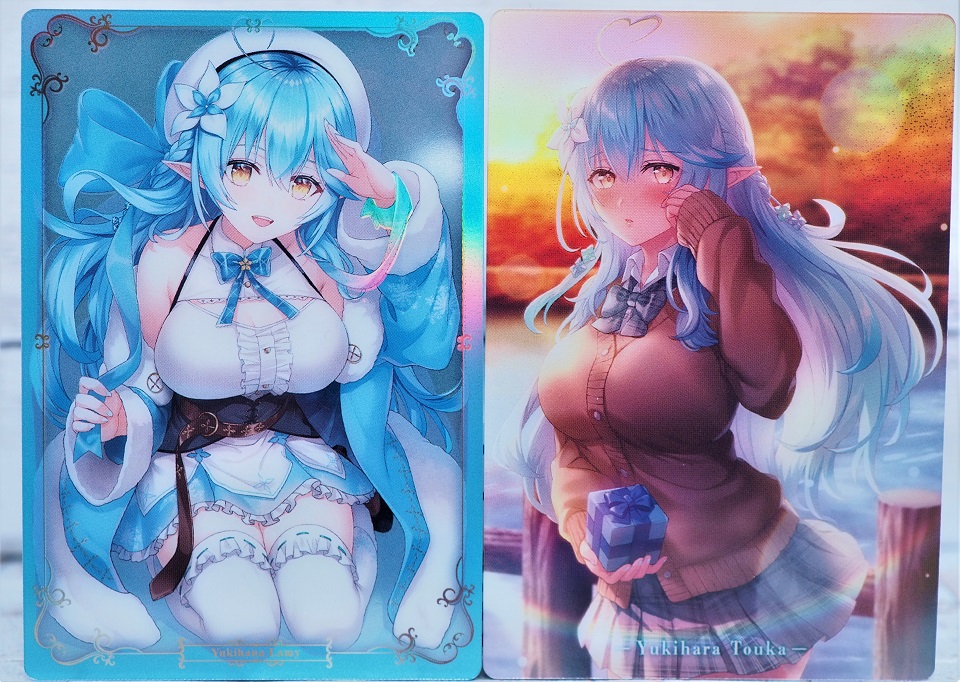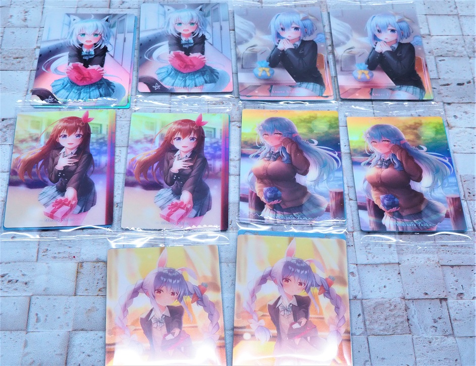 SPECIAL CHOCO WAFERS と 前回の ホロライブウエハース のカードを一緒に並べてみました。