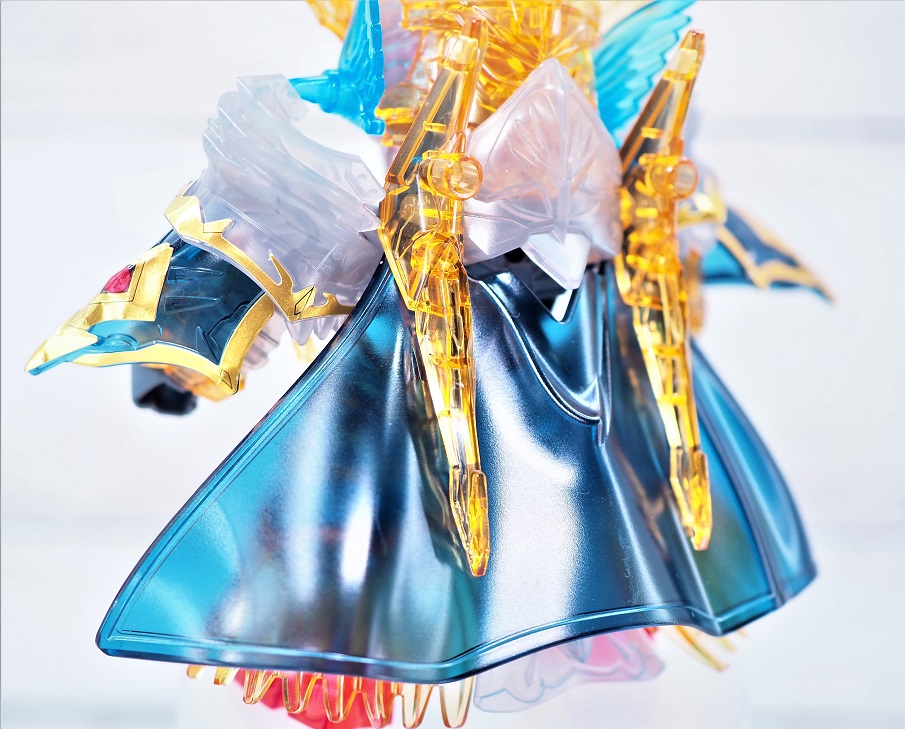 背部のマントは濃いクリアブルーなので背中が薄っすらと透けて見えます。