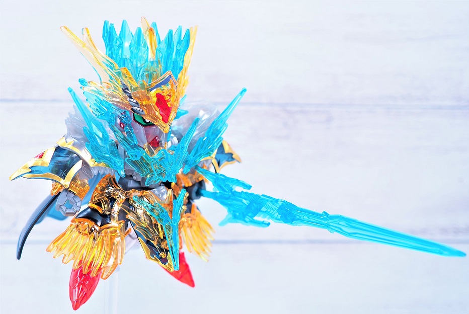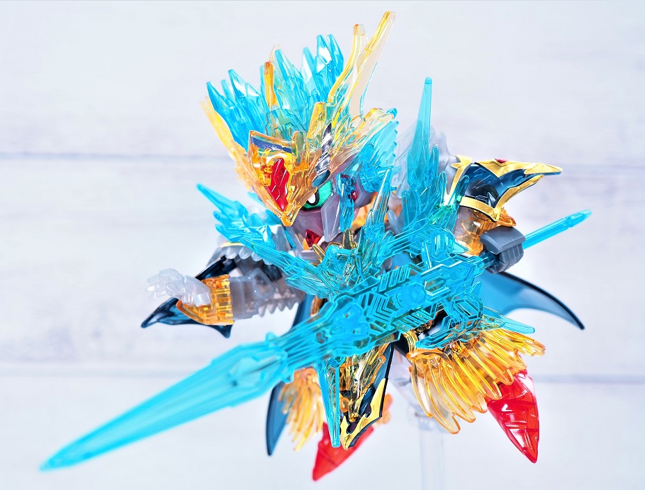 騎士甲冑を纏った姿でナイトガンダムやキングガンダムなどの騎士系SDガンダムを彷彿とさるビジュアルです。