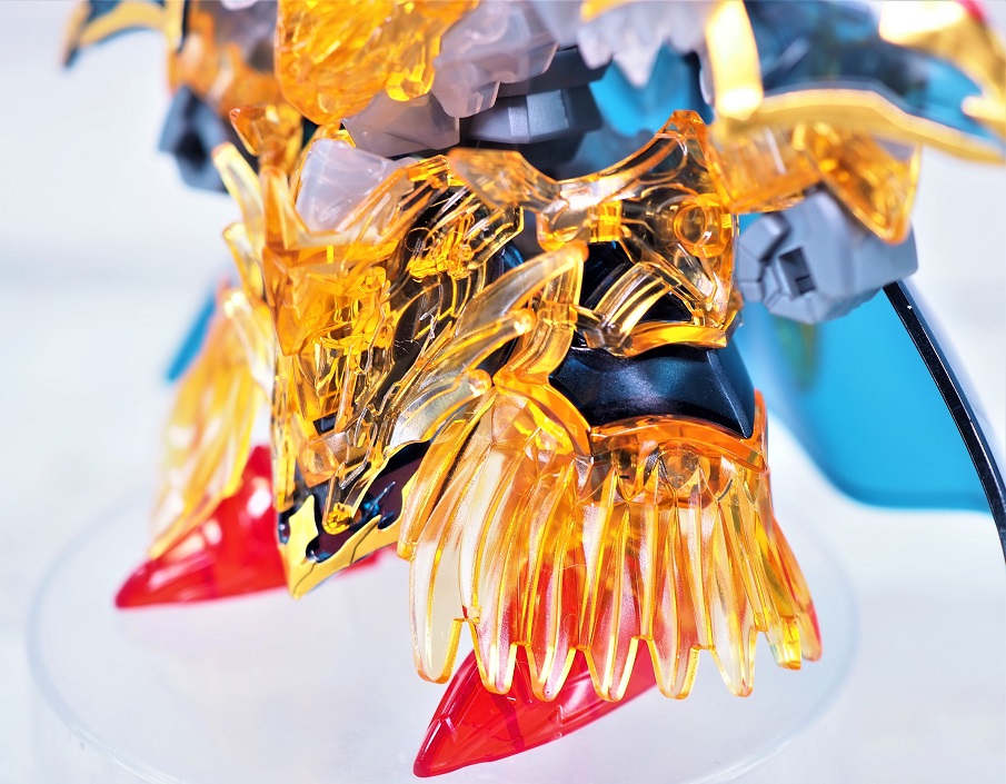 通常キットだと胸部中央に開いた3mm穴が気になりましたが、クリアカラーだと穴がぼやけるのでまったく目立ちません。