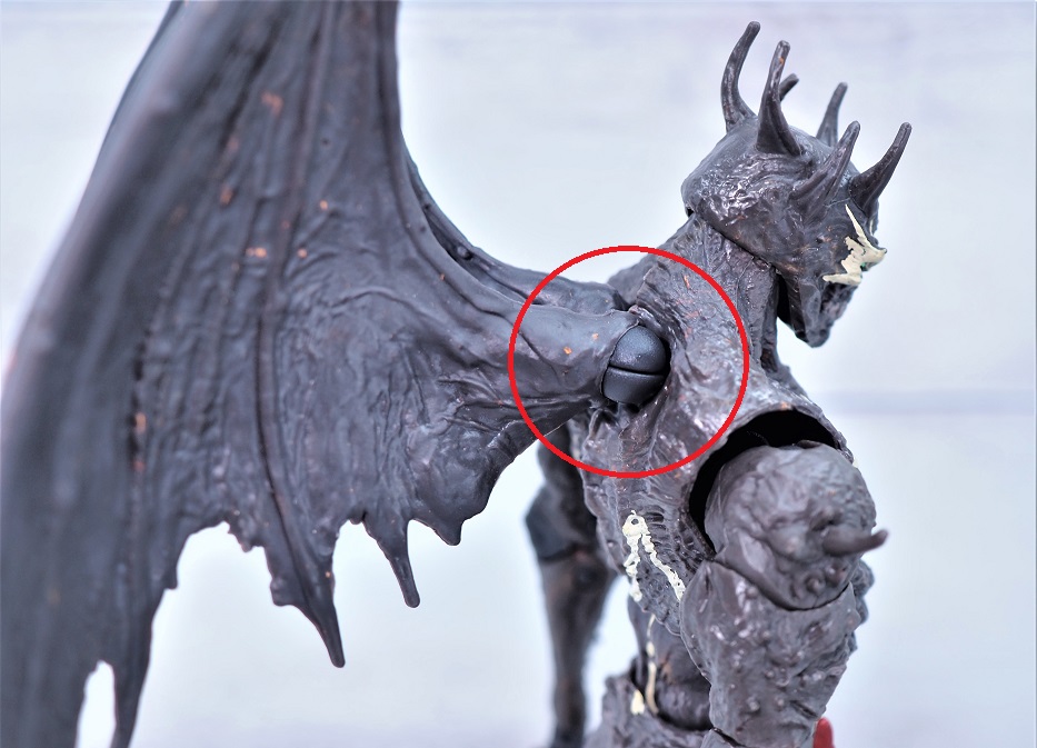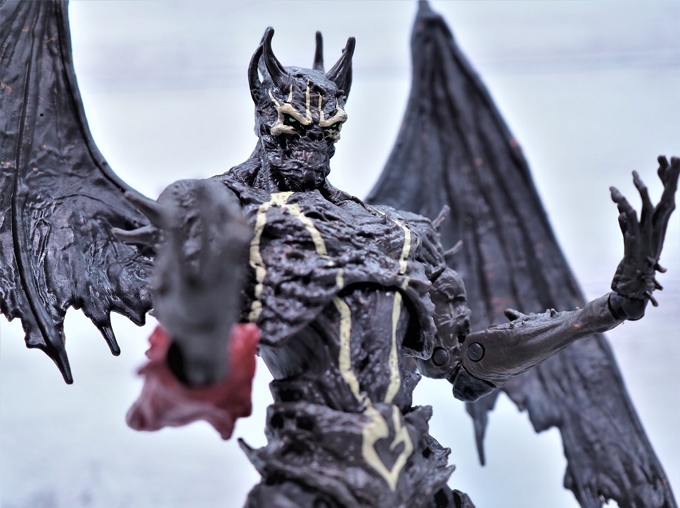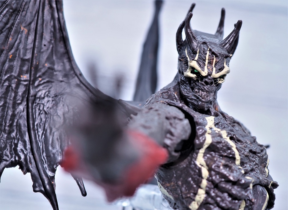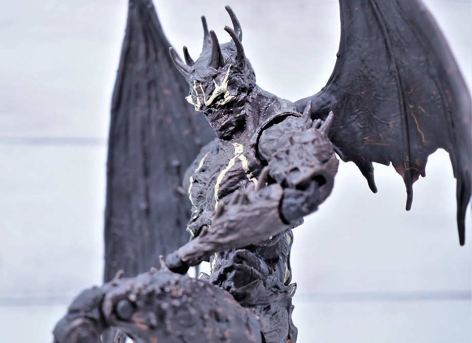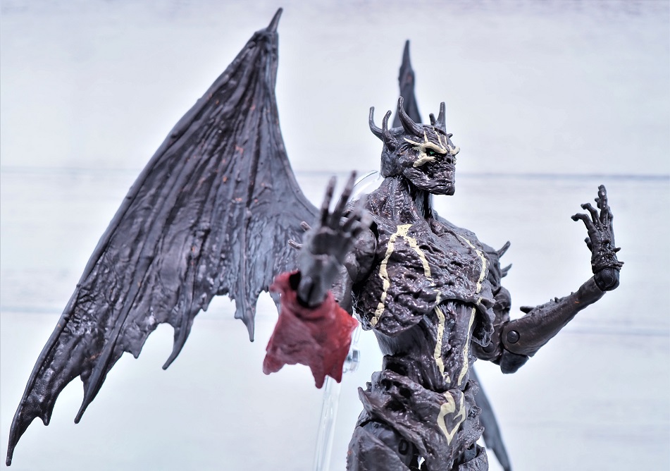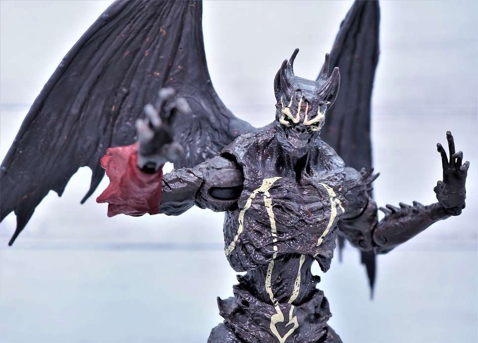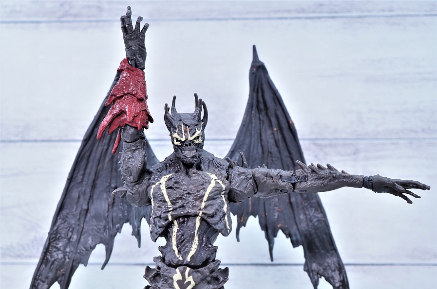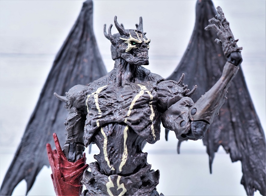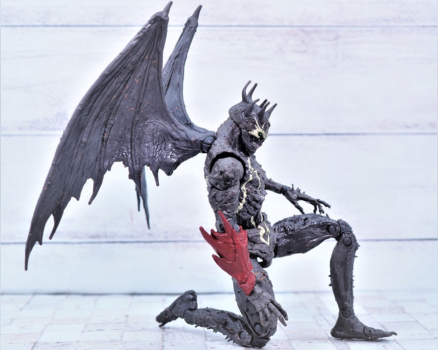 全高は頭までのサイズで約18.5cmでスポーンよりもやや背が高め、左右に翼があるので結構なボリュームがあります。