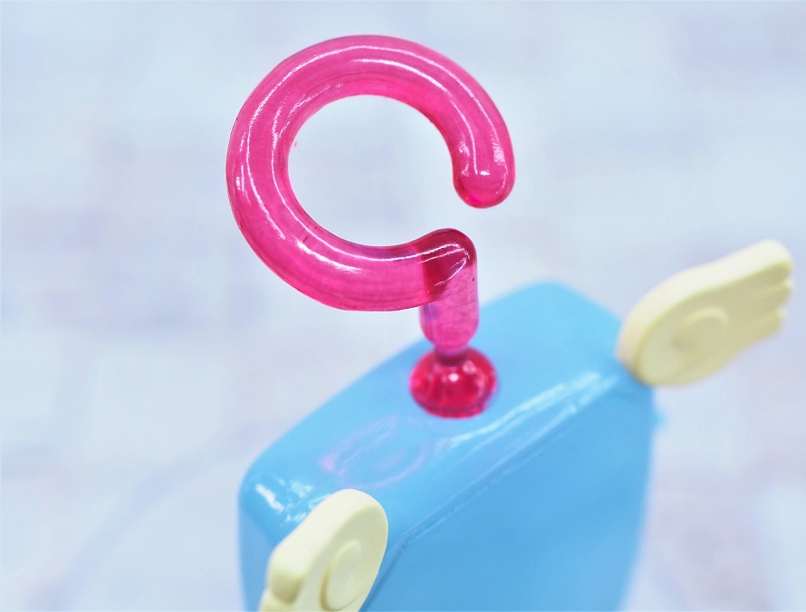 大きさは台座と?マーク込みで大体7センチ。