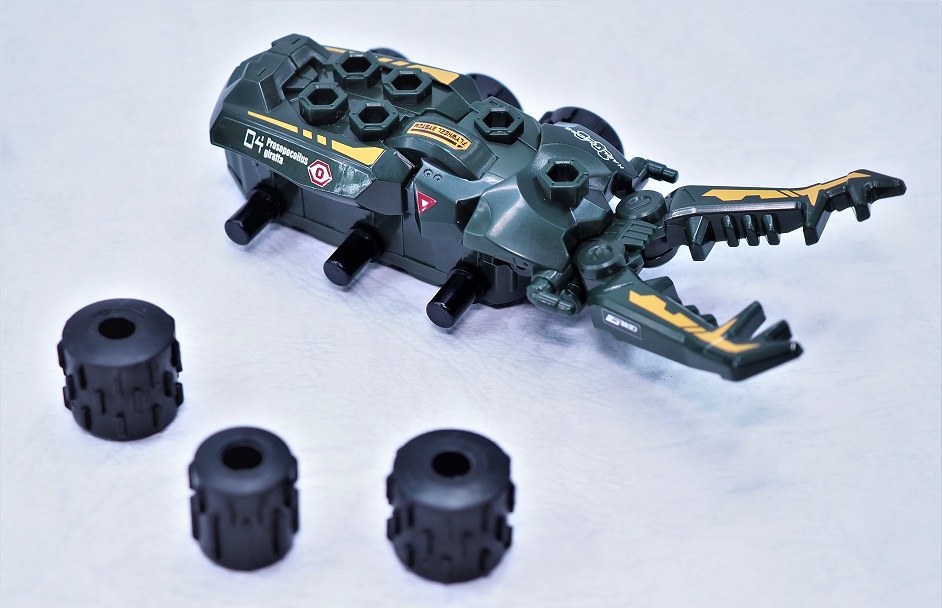 本体は完成済みなので、ボトルマンやゾイドワイルドのようなパーツ組み立て要素はありません。