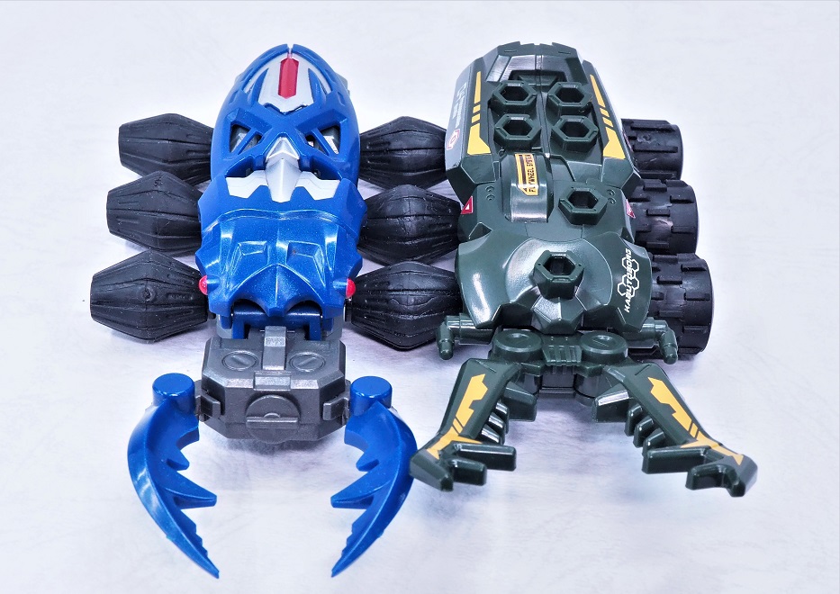 旧カブトボーグはシャーシ、頭部、後部カウルの3パーツに分解することが出来ましたが、令和カブトボーグは頭部パーツのみの分割です。