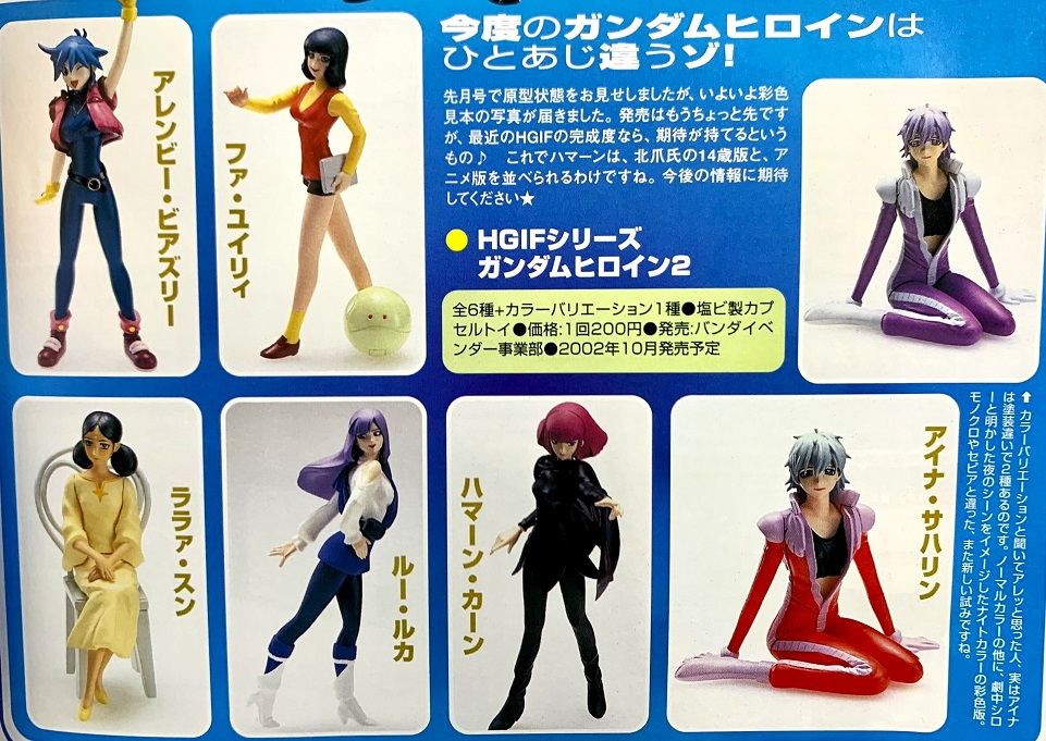 彩色フィギュアで各ガンダム作品の女性キャラクターをメインとしたラインナップになっております。