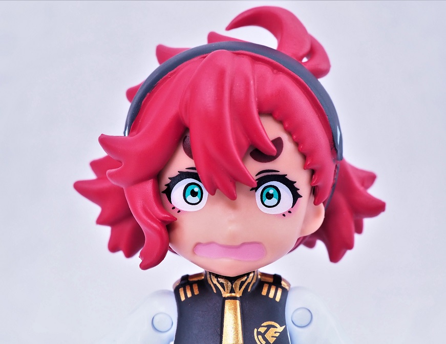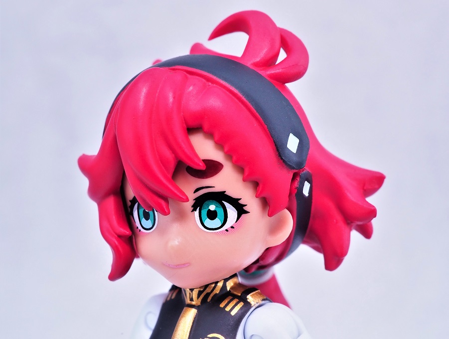 髪は濃い赤の成形色でヘアバンドは塗装されています。
