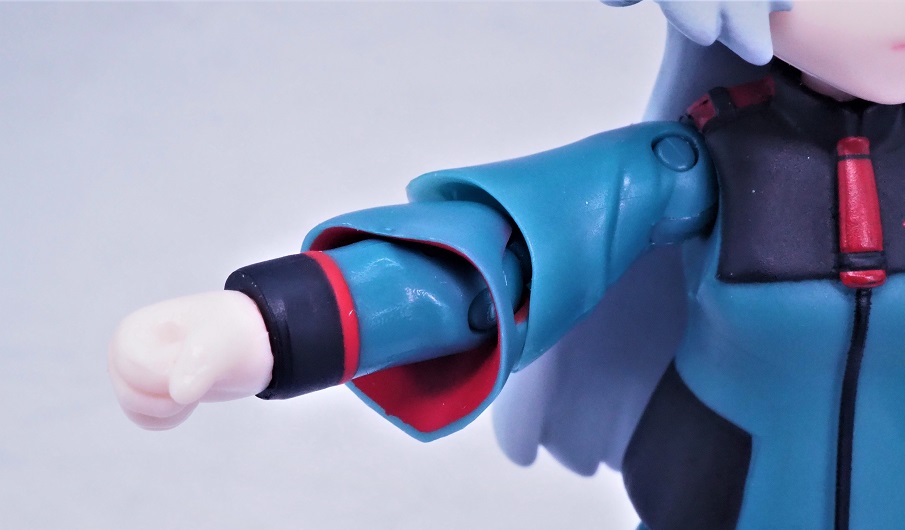 大きく広がった袖口はプラスチックパーツで内側は設定どおりの濃いレッド塗装が施されています。