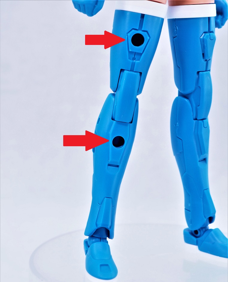 二の腕は3ミリ軸、リングはパーツを差し替えることで武装の取り付けが可能となります。