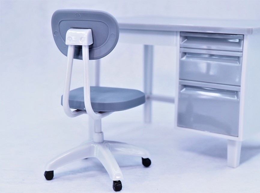 少ないパーツ数ながらもシンプルな事務机の外観が見事に再現されているところが凄いですね。