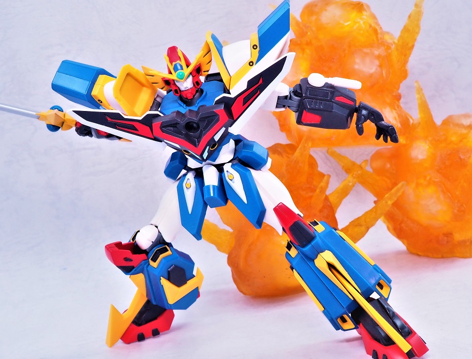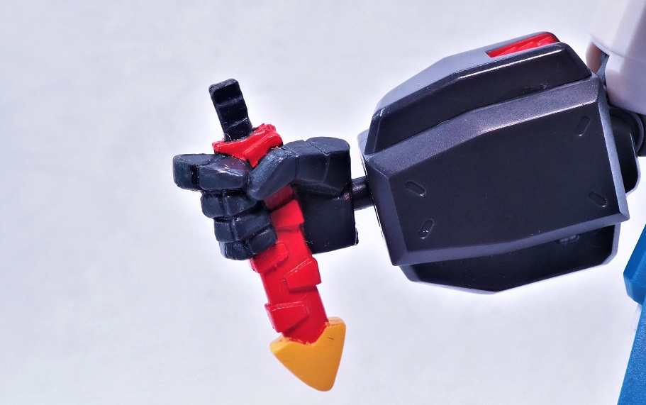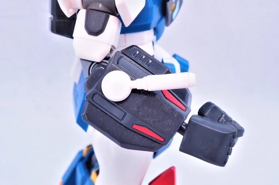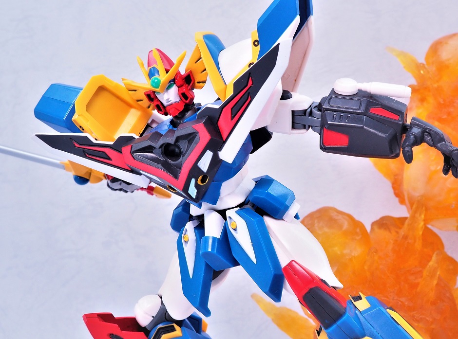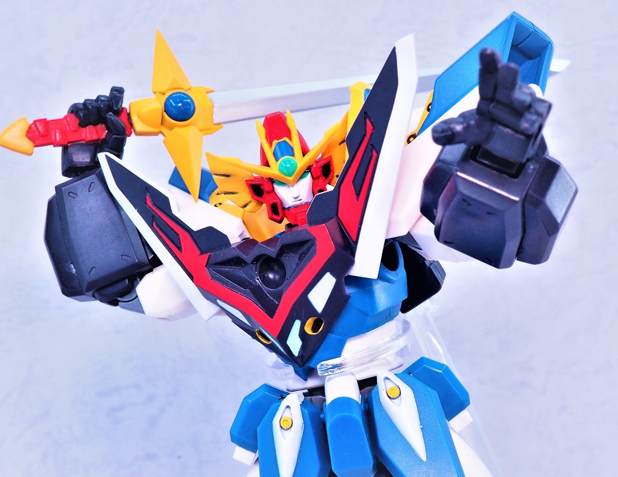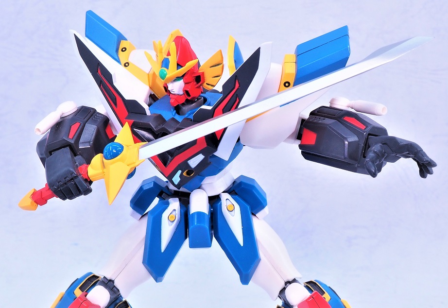 胸のウィングパーツを少し上に逃がすと、腕が当たることなく可動します。