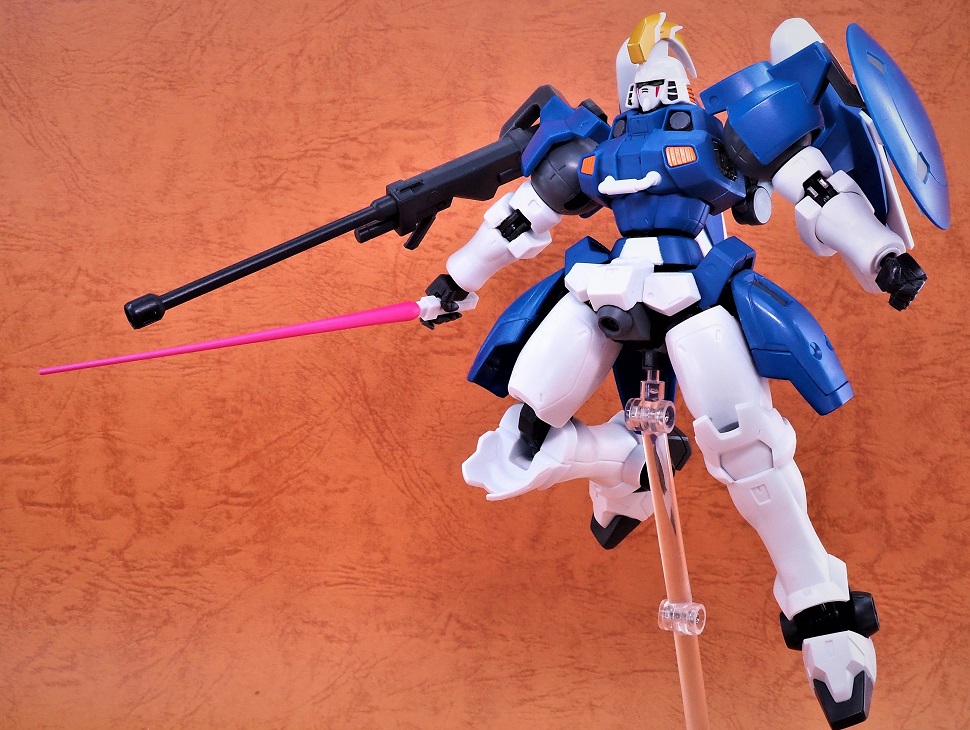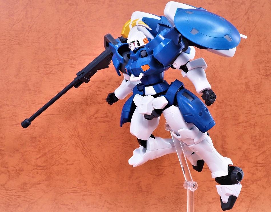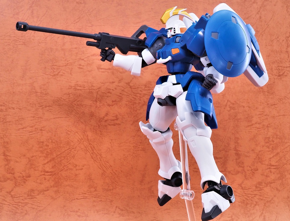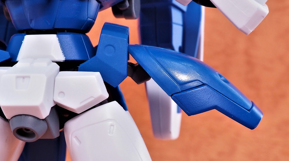 フロントアーマーの面積が小さいのでガンダムタイプよりもやや脚部の可動範囲が広くなります。