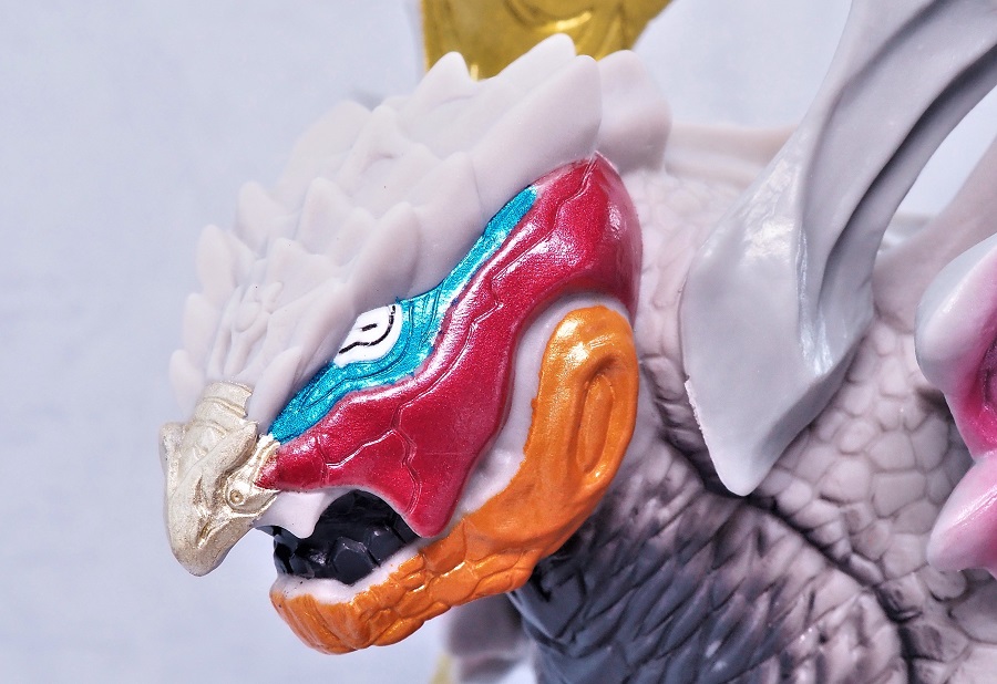 鎧の可動と頭部の露出がソフビシリーズながらも簡易的に再現されています。