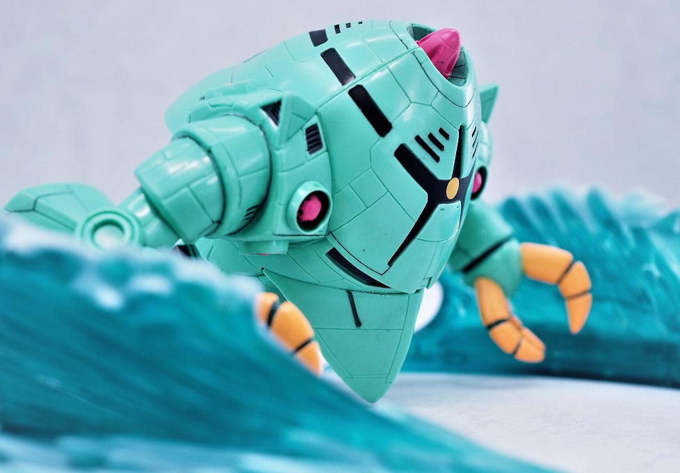 ジオンの水陸両用MSの中でも最も巨大な機体で前後対象のデザインが大きな特徴。
