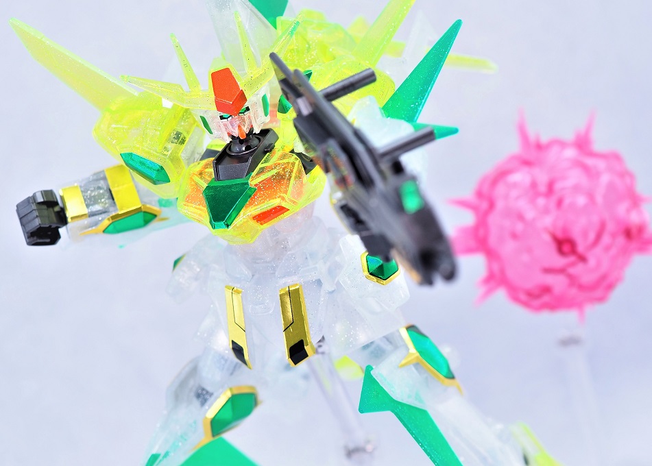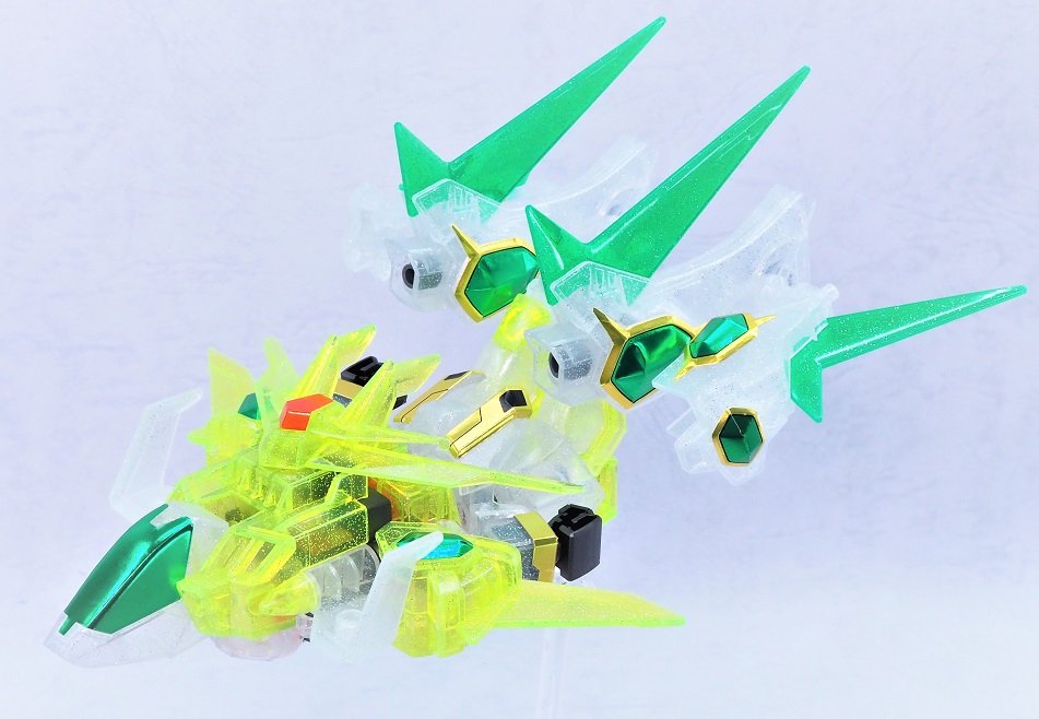 ほぼ全身がクリアパーツなので、プラフスキー粒子をイメージしたラメがかなり映える仕上がりになると思います。