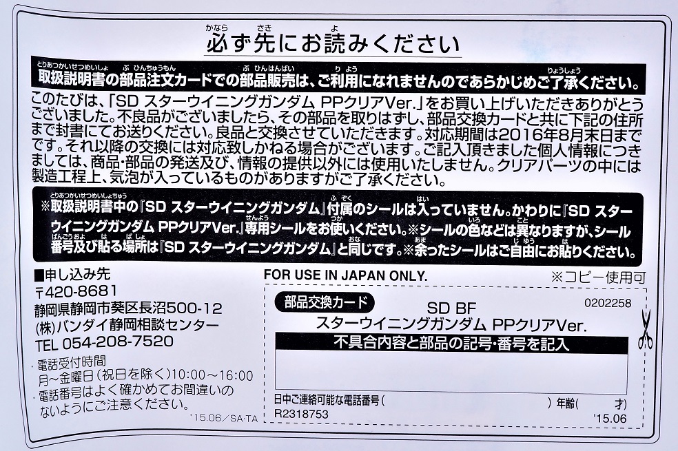 以上「SDBF スターウイニングガンダム PPクリアVer. 」レビューでした。