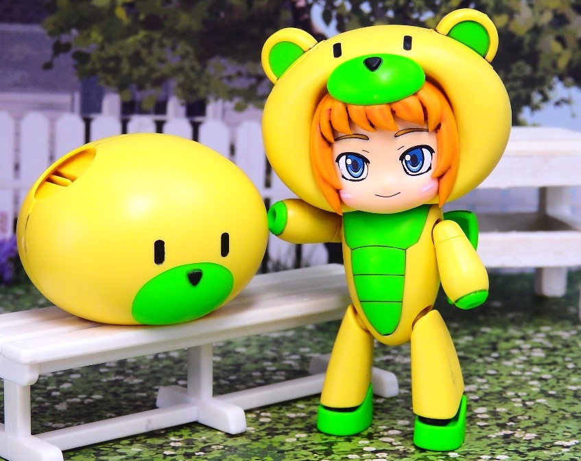 ビルドファイターズに登場した「ホシノ・フミナ」がベアッガイのような可愛らしい着ぐるみ姿になって登場。