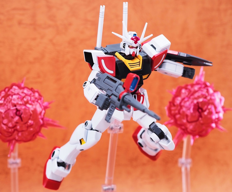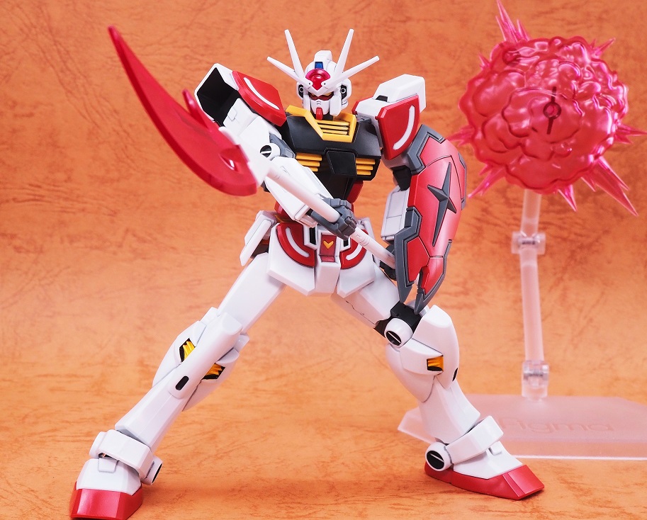 動かす際に背中の武器が外れないように気を付けるくらいで、可動範囲に関してはEGガンダムと同じなのでシンプルによく動きます。