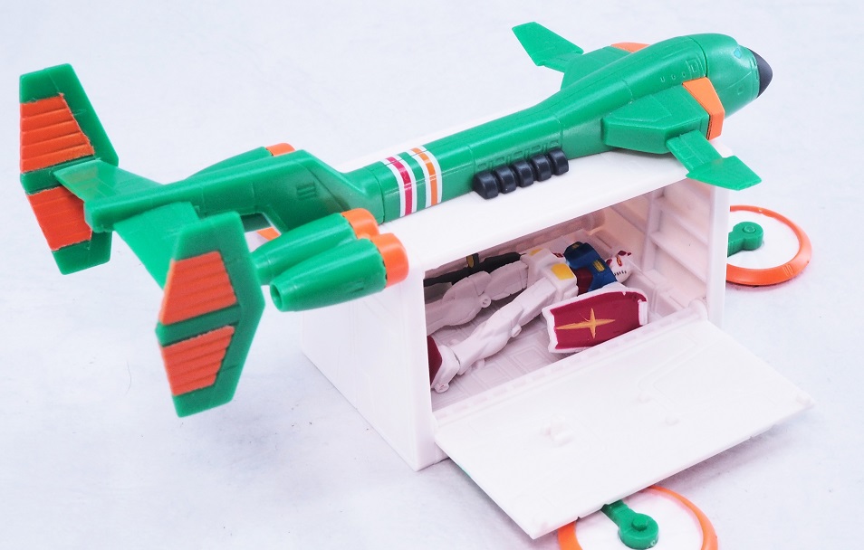 セブンイレブンに扮して秘密裏に空輸されるガンダム。