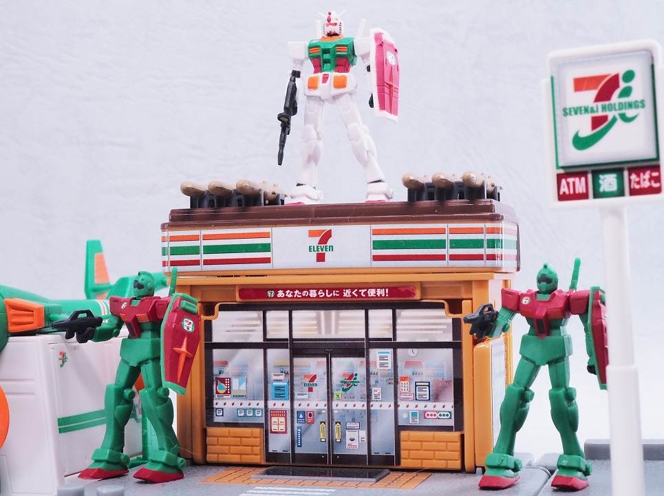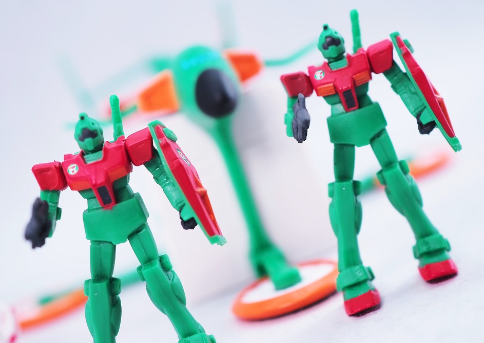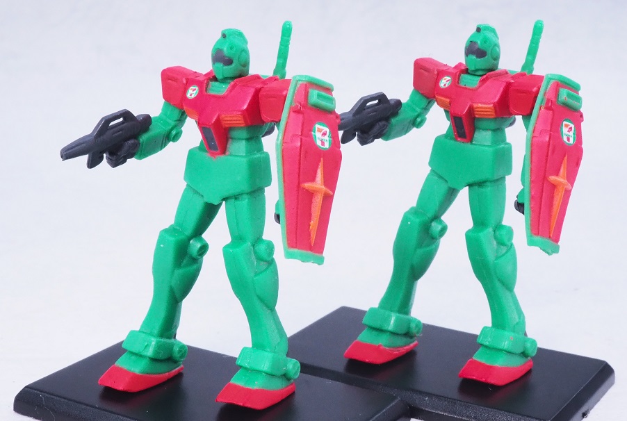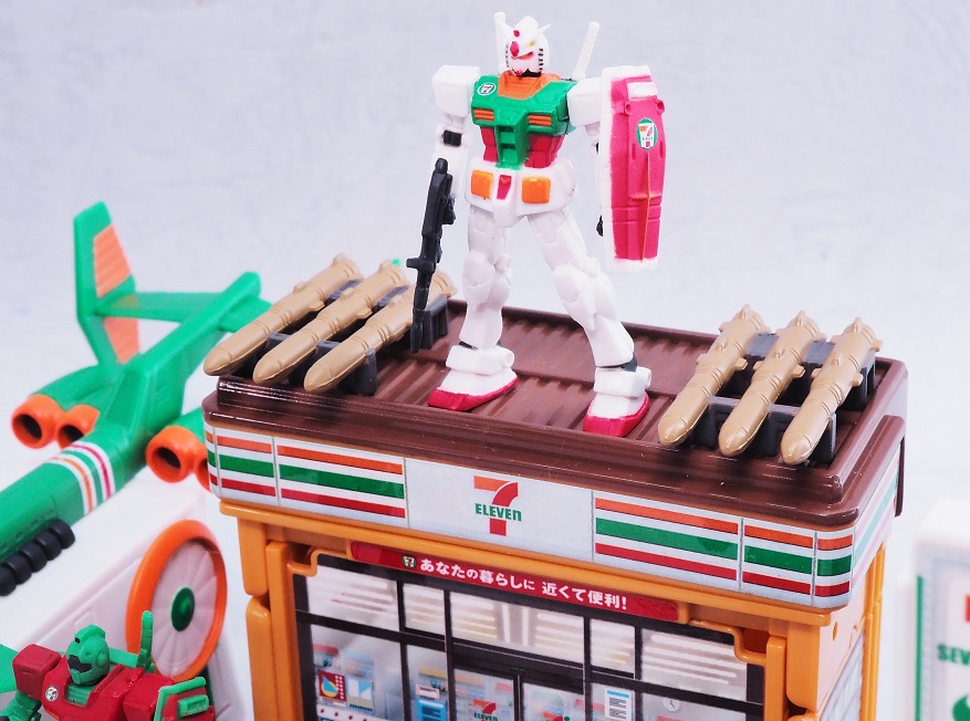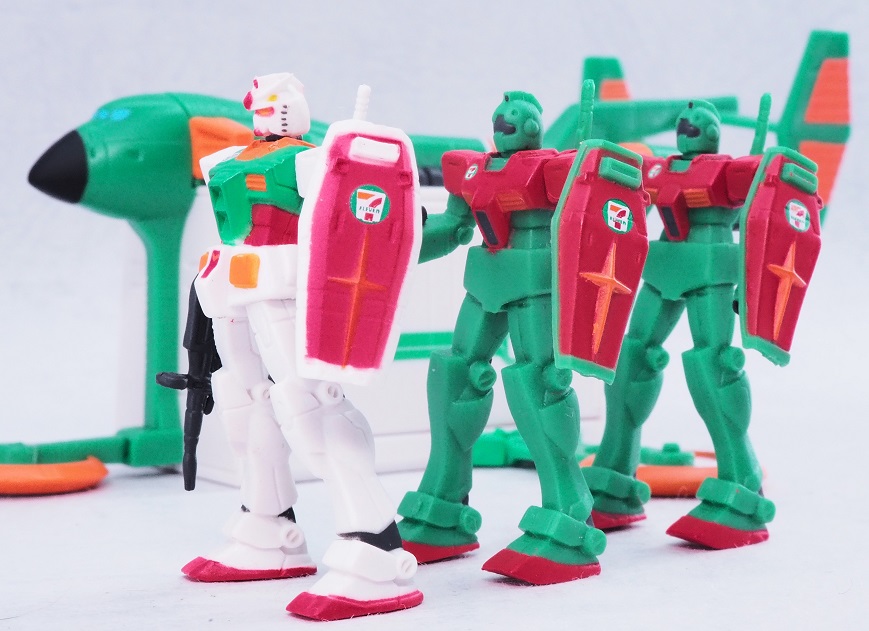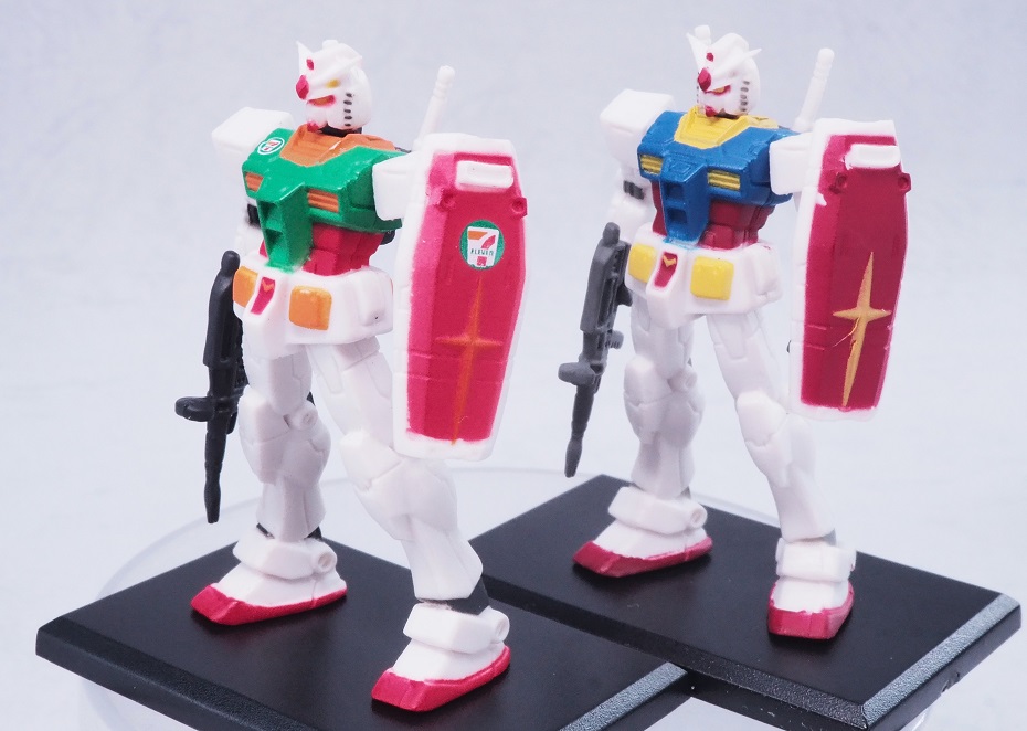 よく見るとセブンイレブンの方は首やバルカン部分まで彩色されていますね。