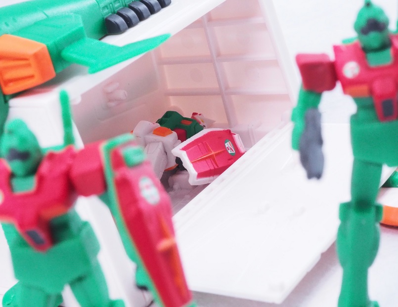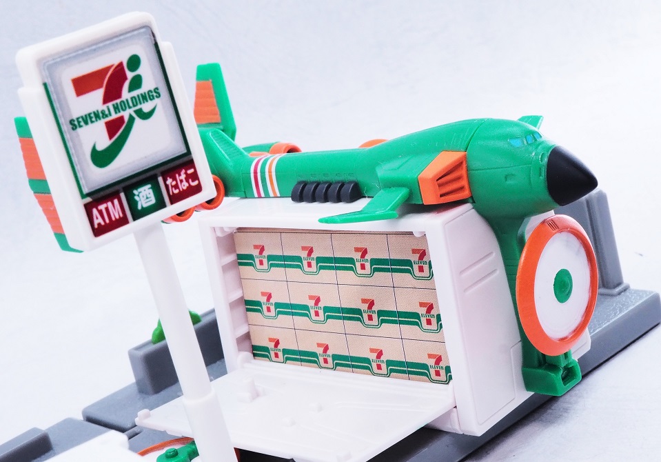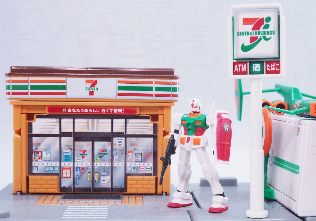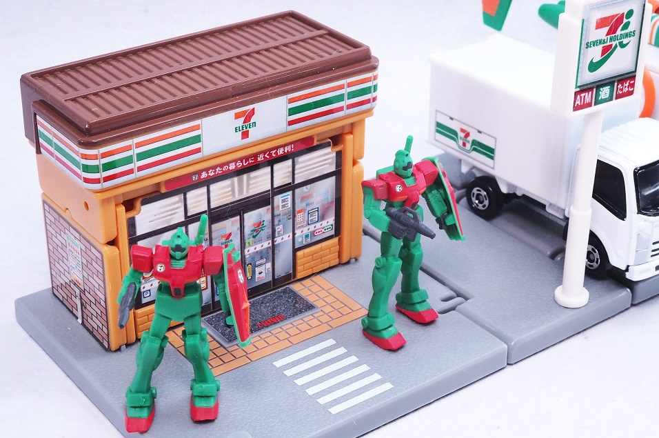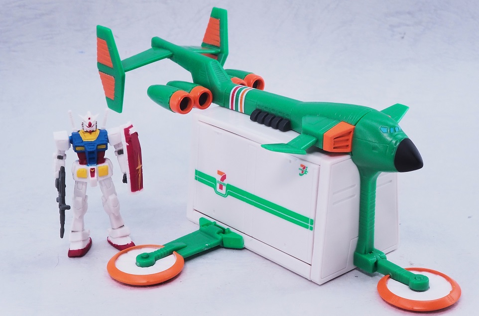 よく見るとセブンイレブンの方は首やバルカン部分まで彩色されていますね。