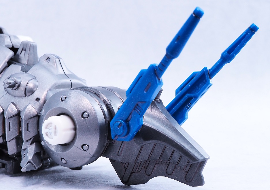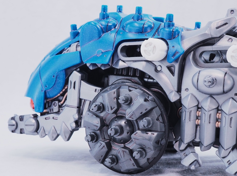目はメタリックオレンジの彩色済みパーツでブルーの外装にはシルバーのラメが入っています。