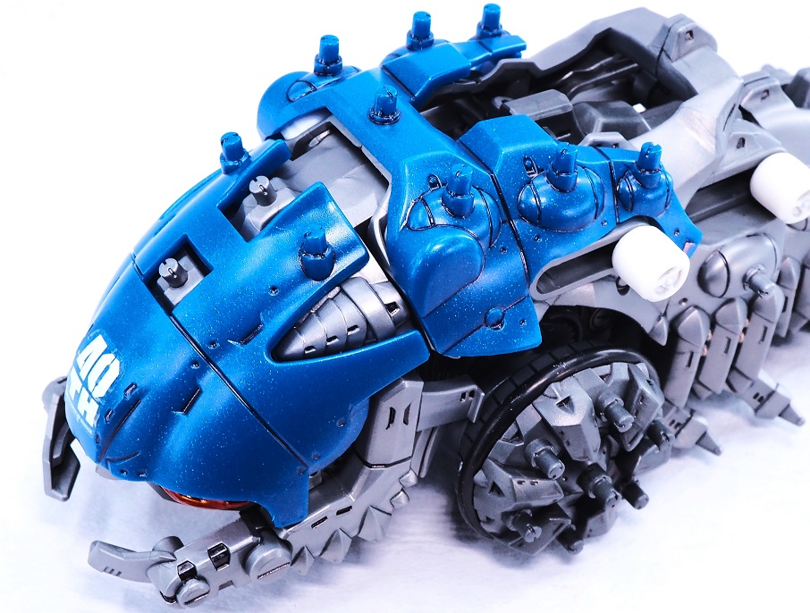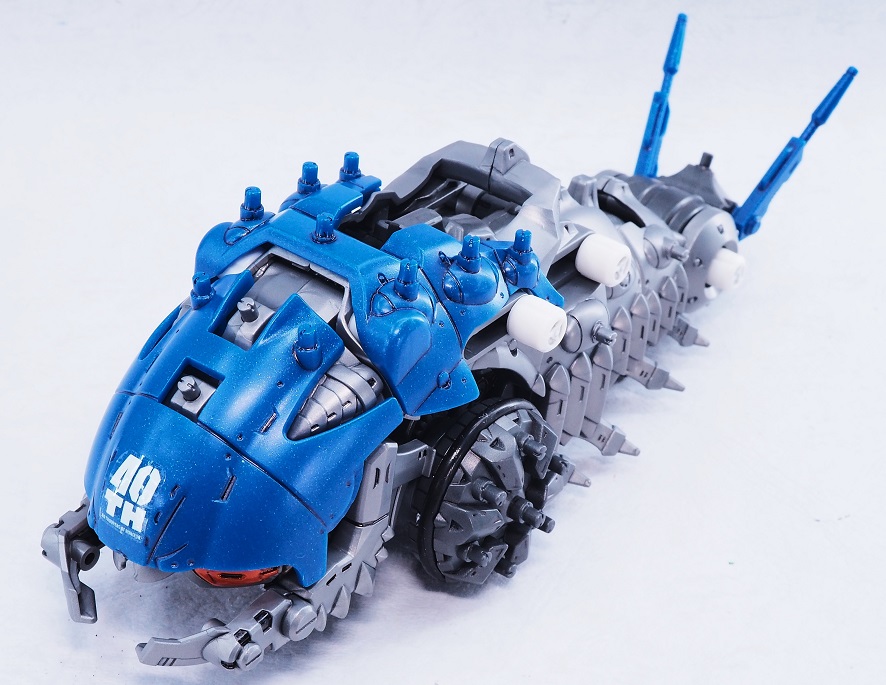 通常のキャタルガはカーキ色のような淡い色合いの装甲でしたが、今回の40THでは濃いブルーに変更。