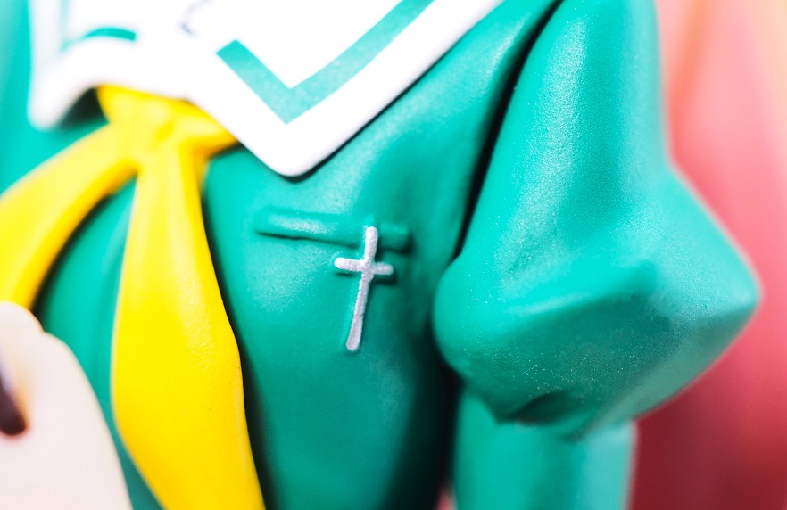 制服はグリーンの成形色で裾のホワイトは塗装による再現。