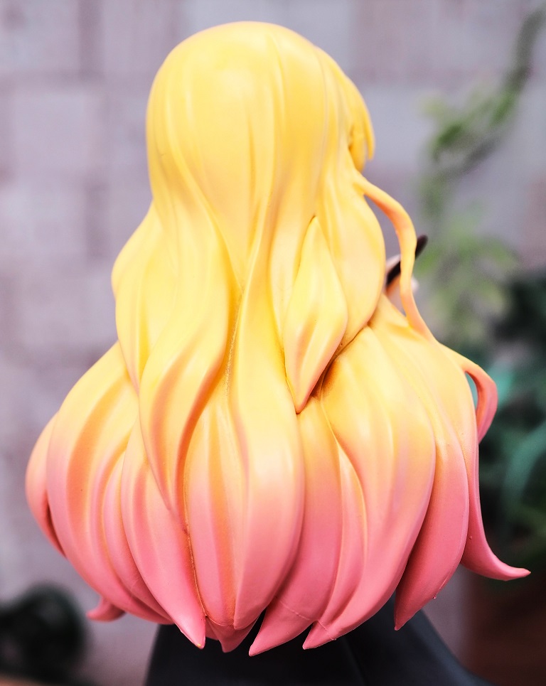 後ろ髪はボリュームのあるふわふわウェーブでピンクのグラデーション塗装になっています。