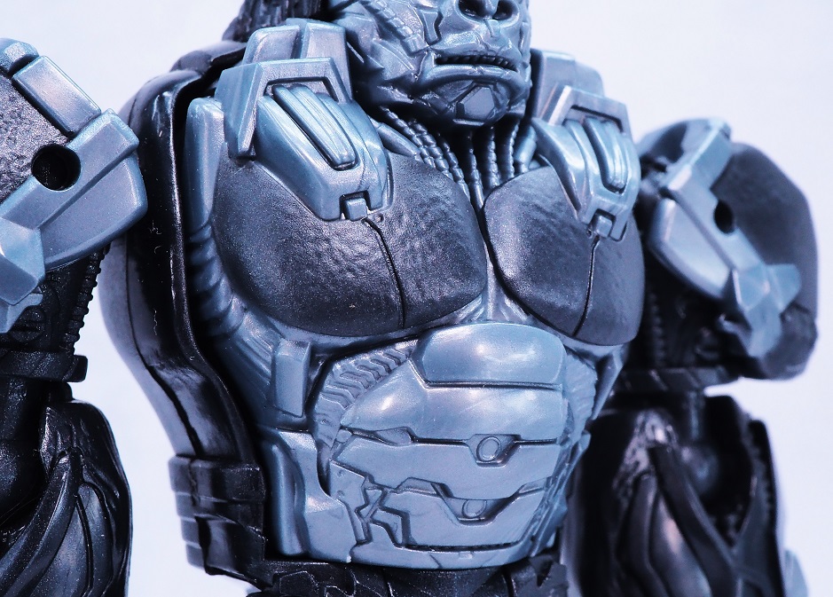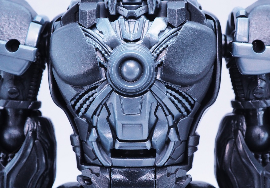ブラックとグレーがメインなので色はかなり地味ですが重厚感のある胸板。