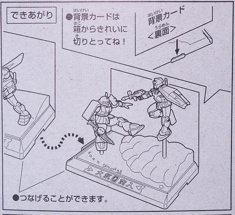組み立てたフィギュアをベースに乗せて背景シートを差し込む事で完成。