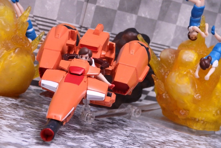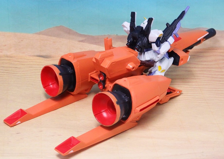 作中に登場するサブフライトシステムとそれに乗せて遊ぶMSがセットになった完成品フィギュアとなっております。