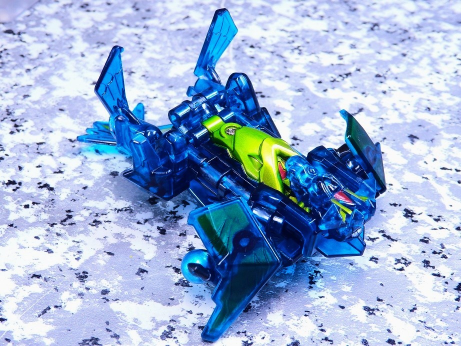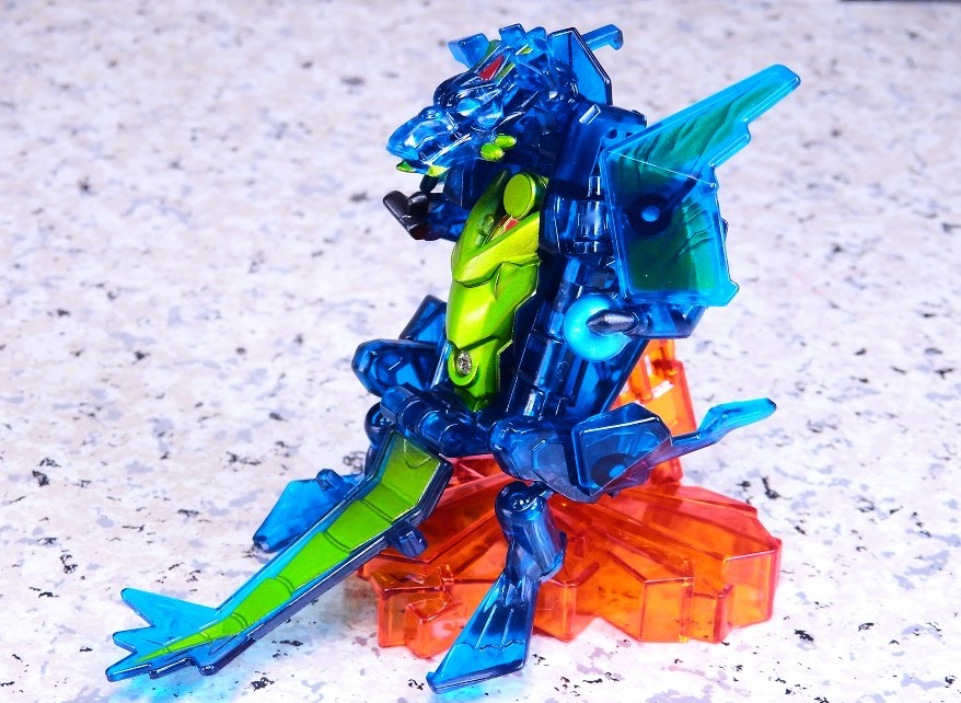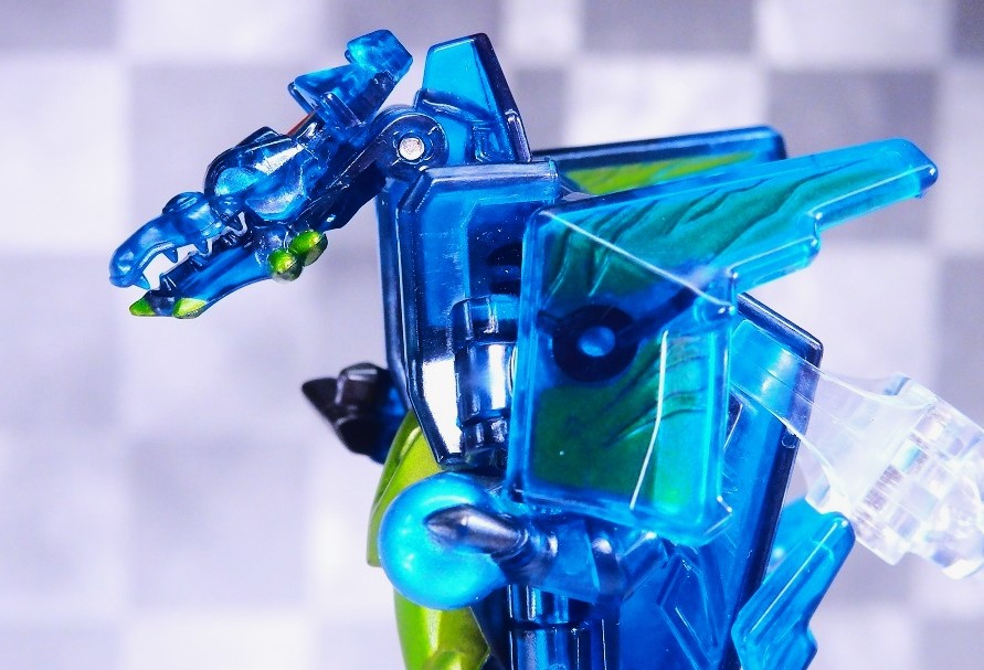 クリアカラーの外見と差し替えなし変形は玩具らしくて面白いと思います。