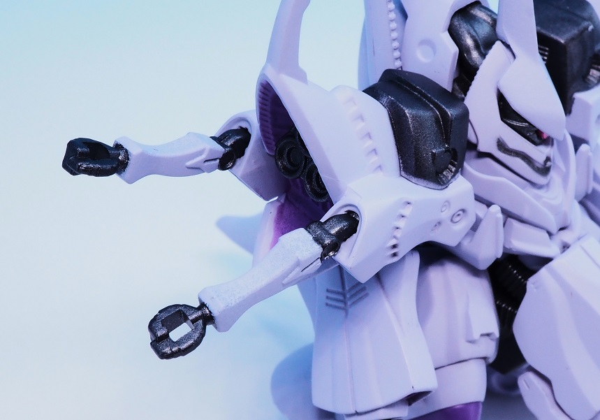 肩アーマーに開いている穴には拡張パーツセット収録の「隠し腕パーツ」を取り付けることが出来ます。