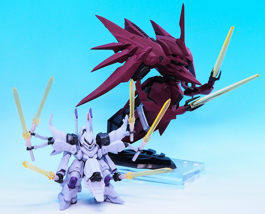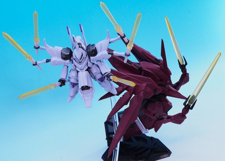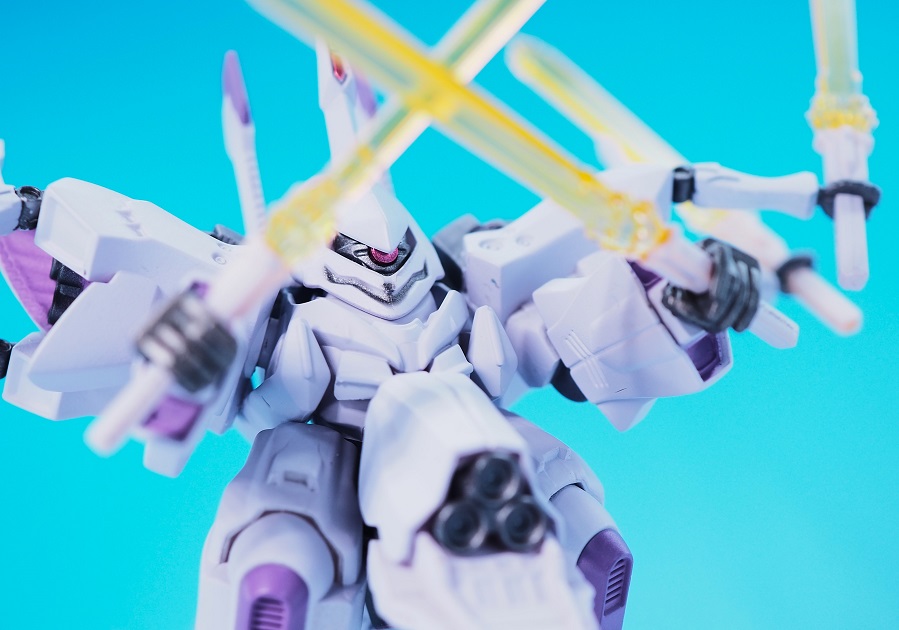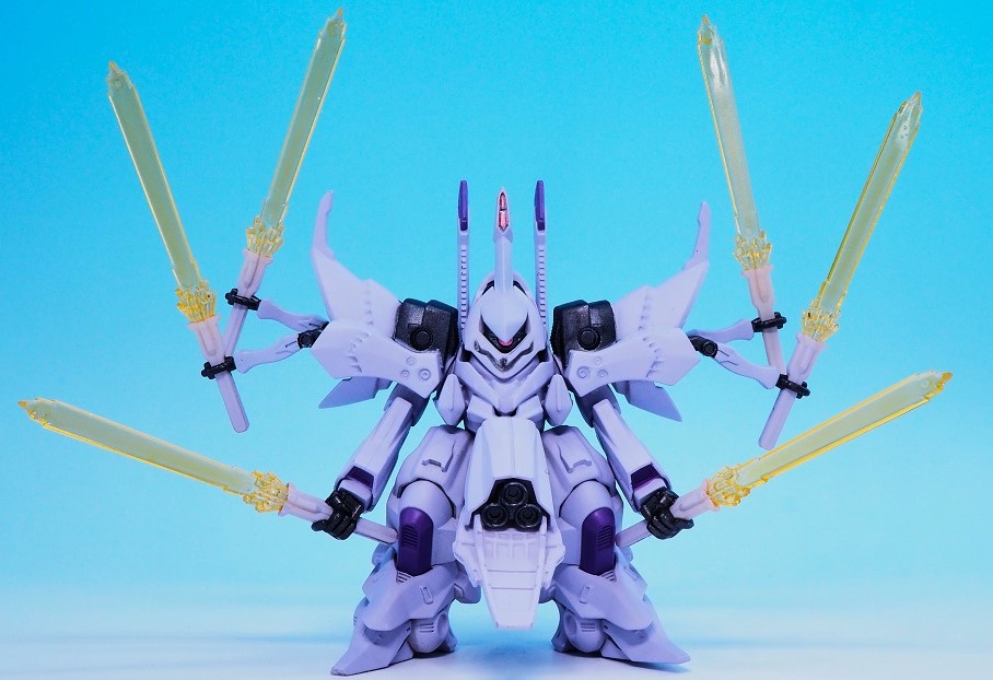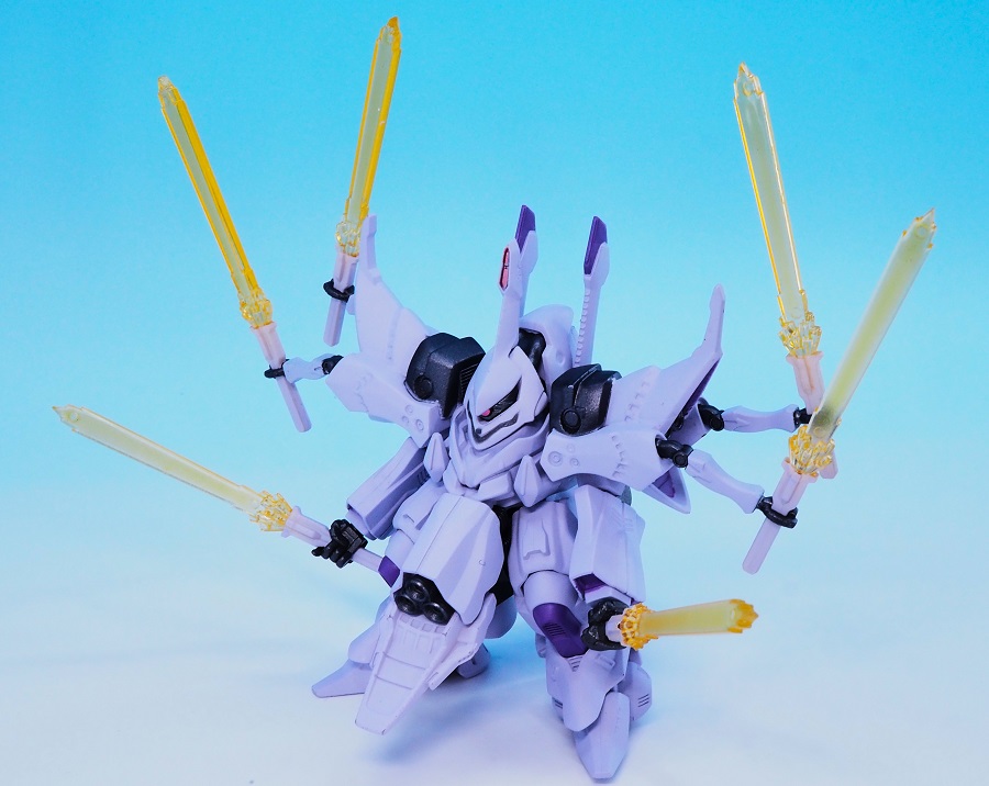 各ハンドパーツと隠し腕に持たせることでGジェネジェネシスの戦闘シーンで見る事ができる六刀流状態が再現可能。