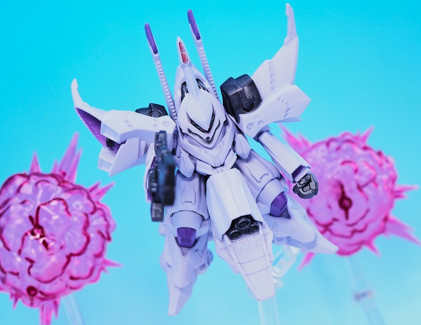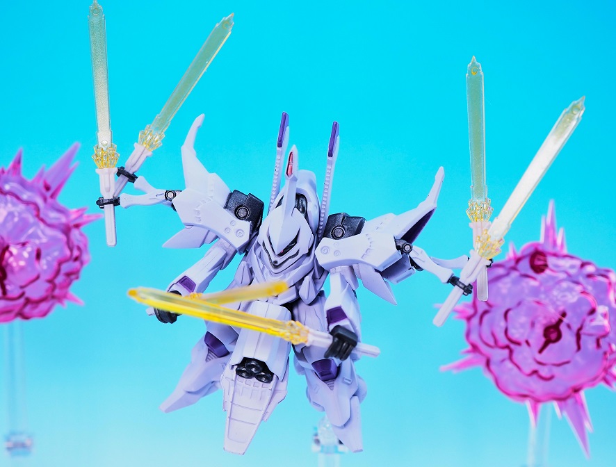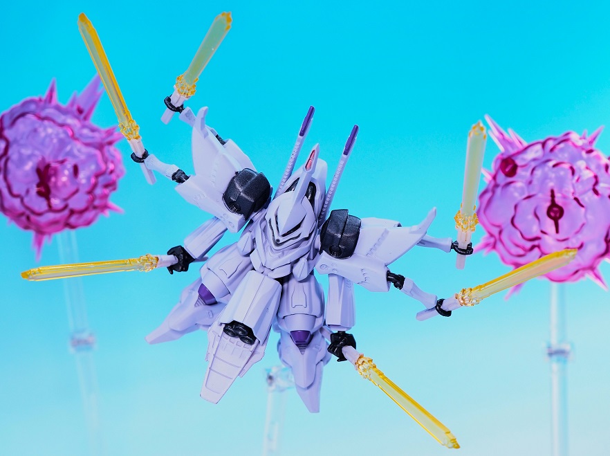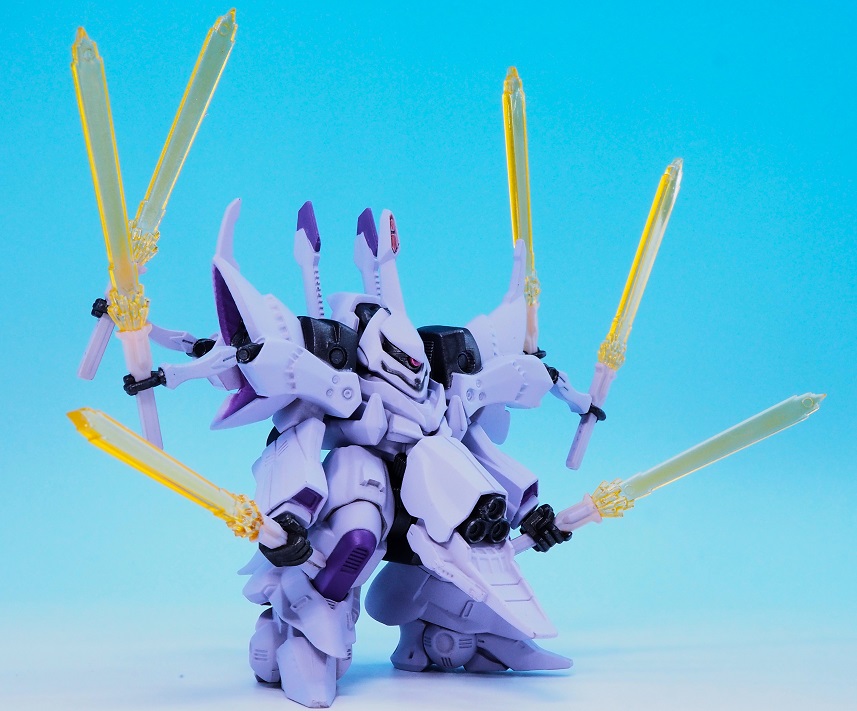 ビームソードを持たせることで扇状に広がるため見た目のボリュームがかなり増しますね。