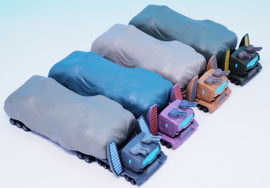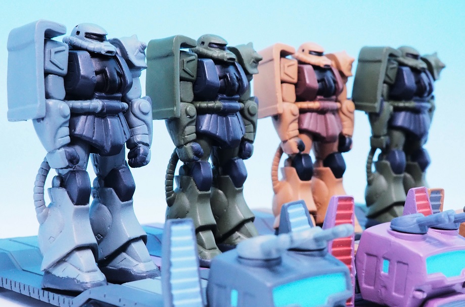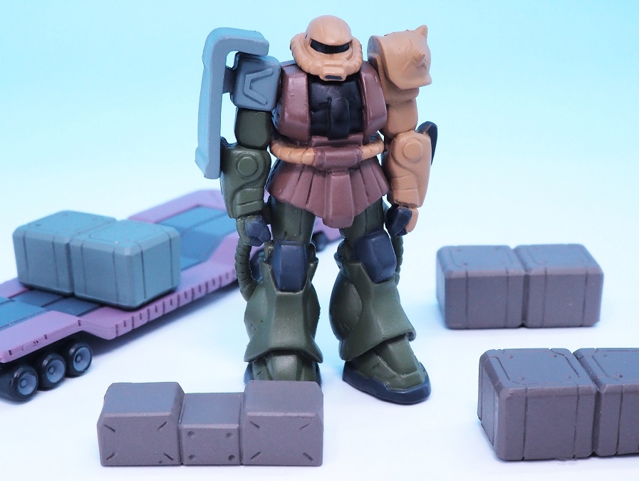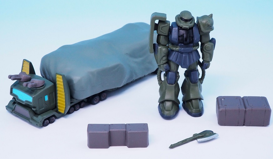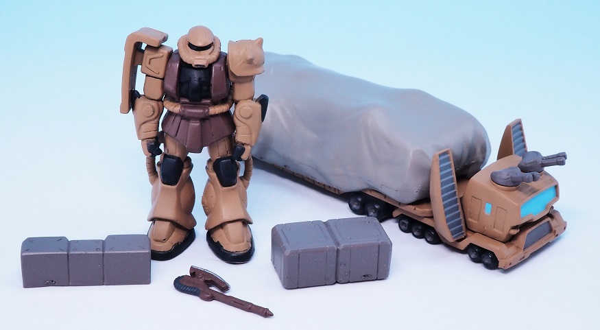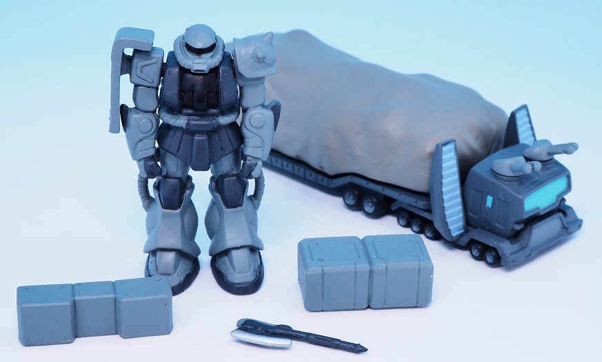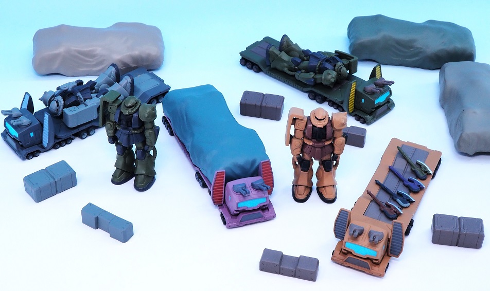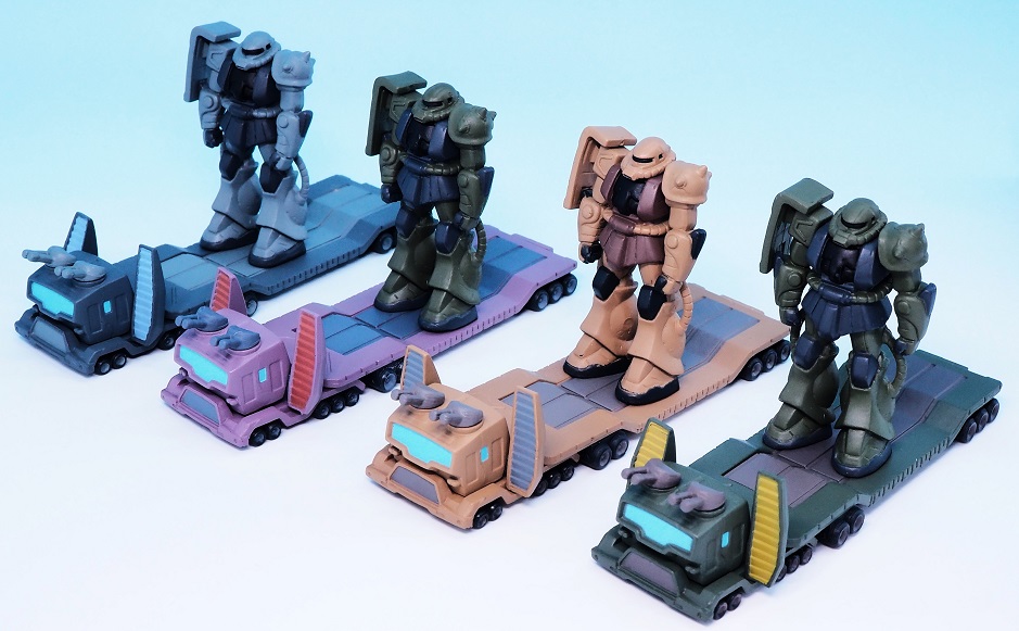 ブラインドボックスなのでランダム封入ですが、中身はすべて「ジオン軍トレーラー」のカラバリとなっています。