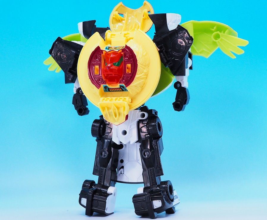 胸部にライオンの顔が付く王道合体パターンですが、ロボの顔が隠れてしまうところが残念ですね。