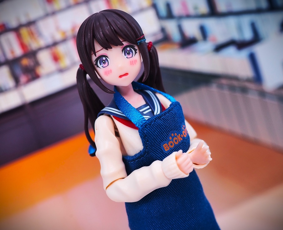 こちらはドール服でお馴染みの「アゾン」との協力で型紙から作り起こした創彩少女庭園専用のブックオフのエプロン。