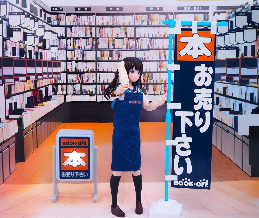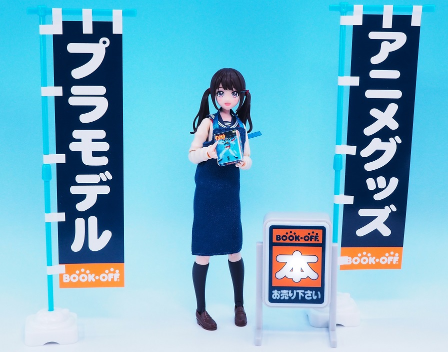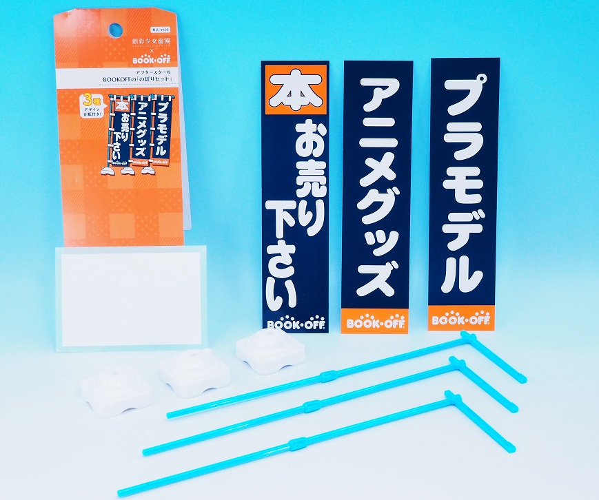 実際にブックオフの店舗に設置されているのぼりをミニチュアサイズで再現。