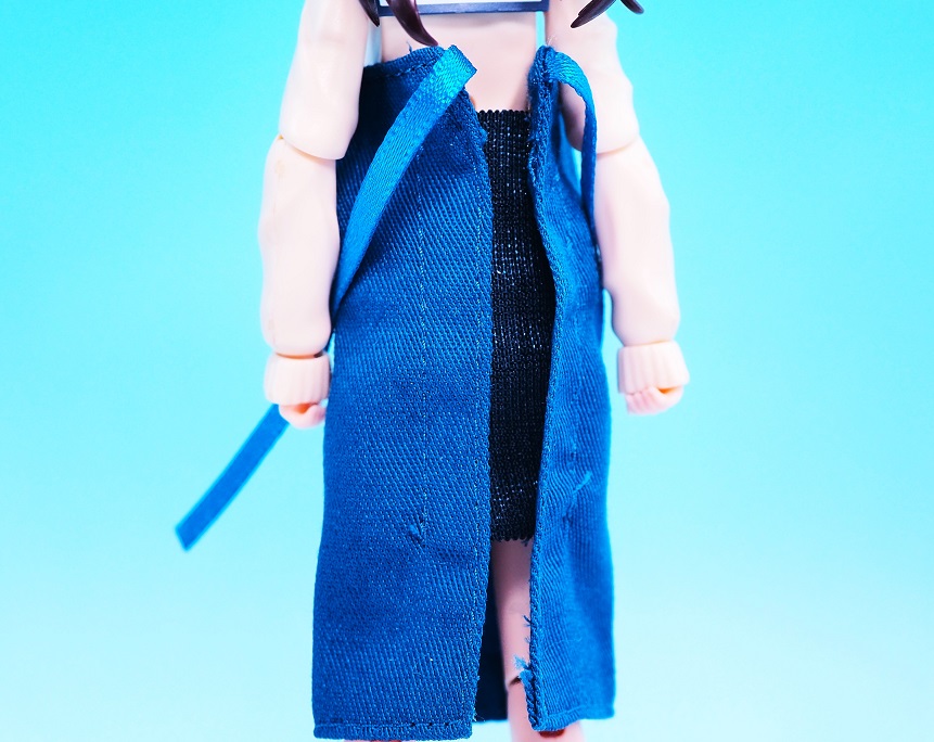エプロンは布が筒状になっており、エプロンの中に創彩少女の胴体を通して着せるといった感じになります。