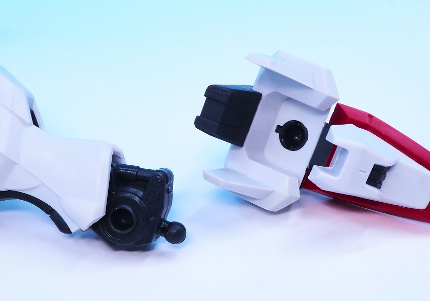 サイドアーマーとフロントアーマーは受けのキャップと軸による接続。