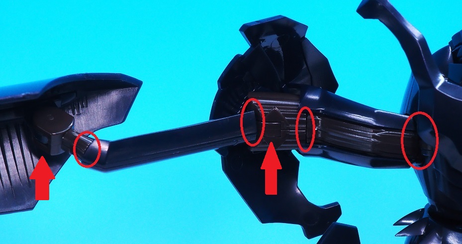 接続軸が細いので気を付けて動かさないと軸関節がポキッと折れそうで怖いですね。