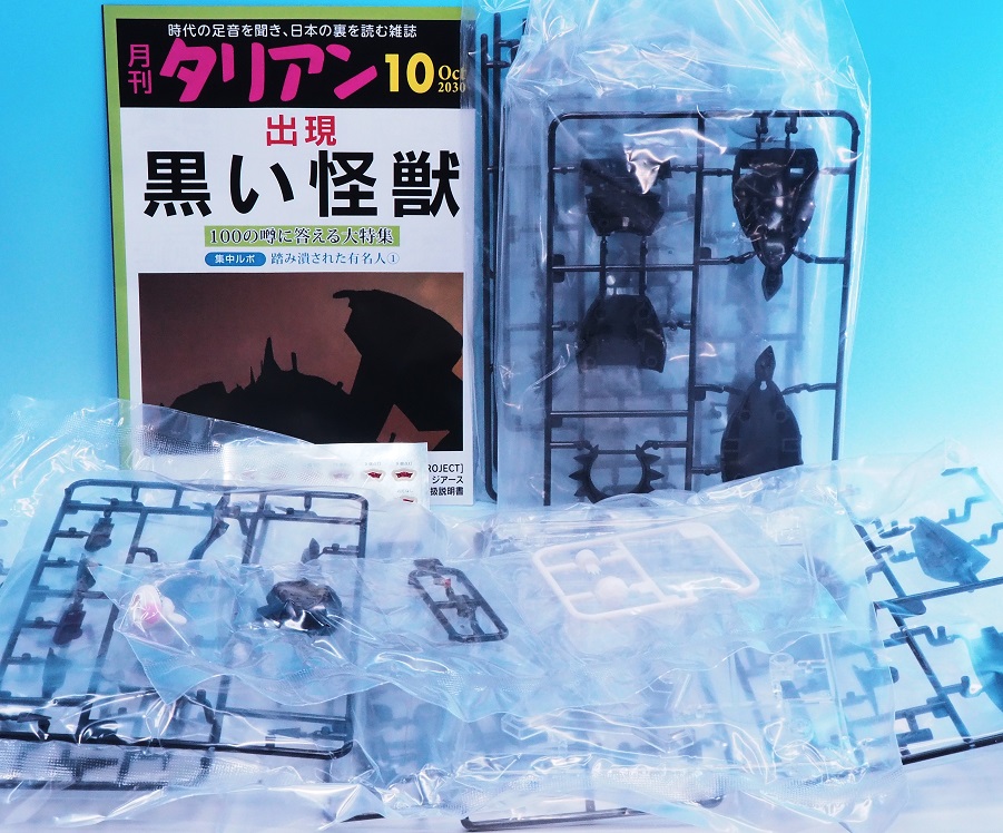 ちなみにパッケージデザインもアニメに登場する「黒い怪獣」のガレージキットがモチーフ。