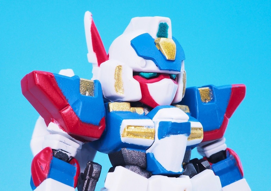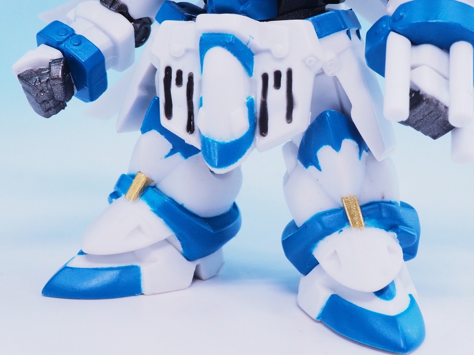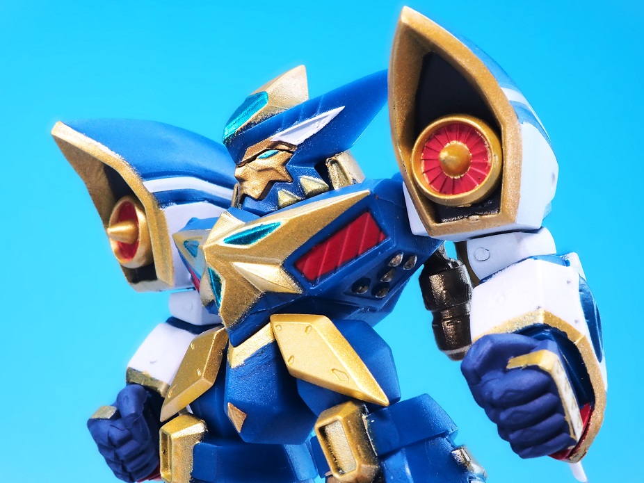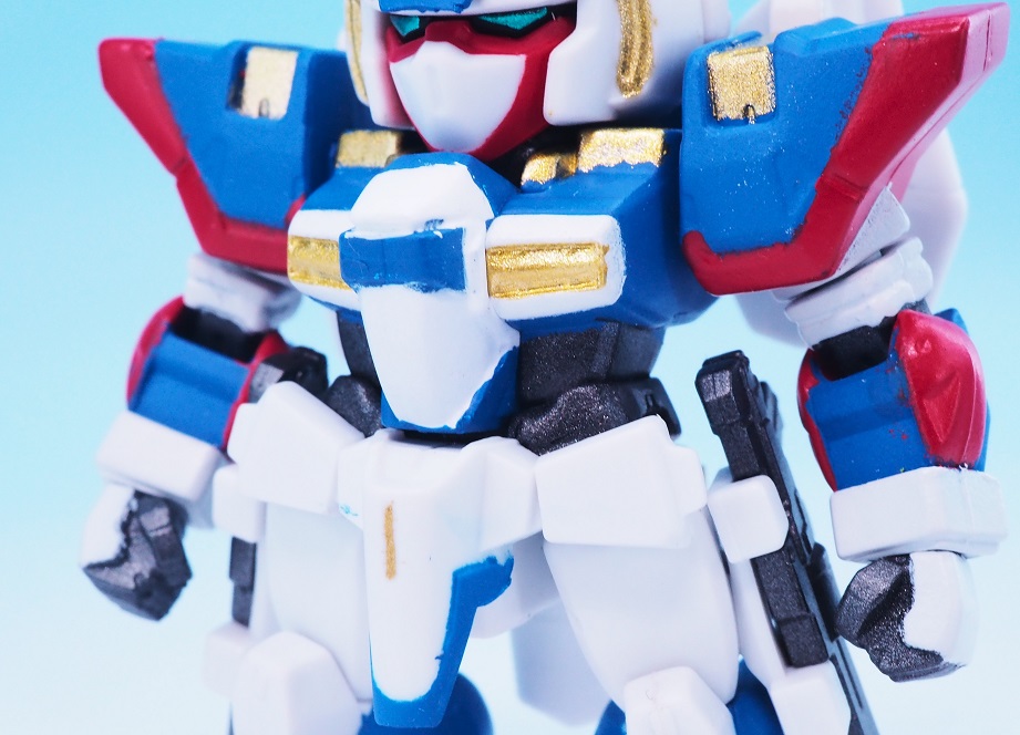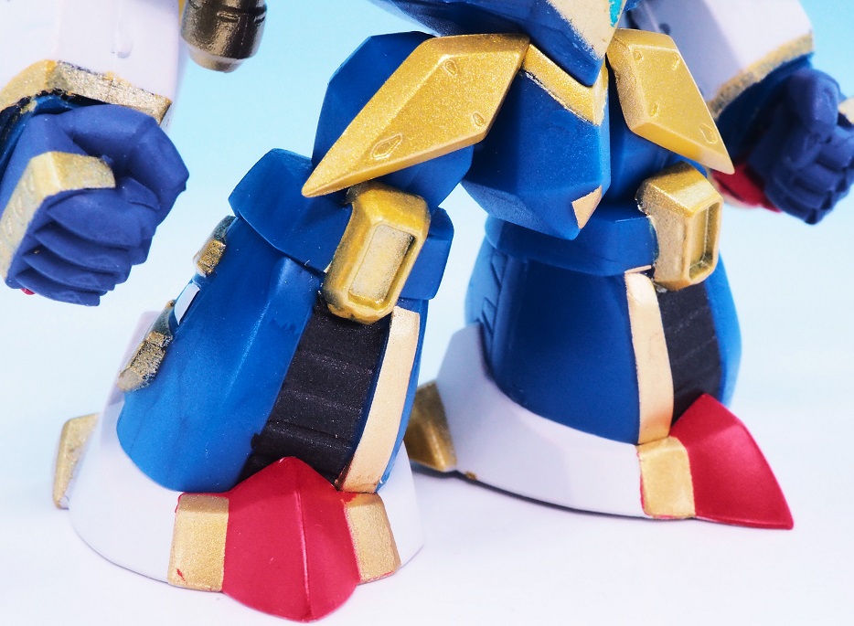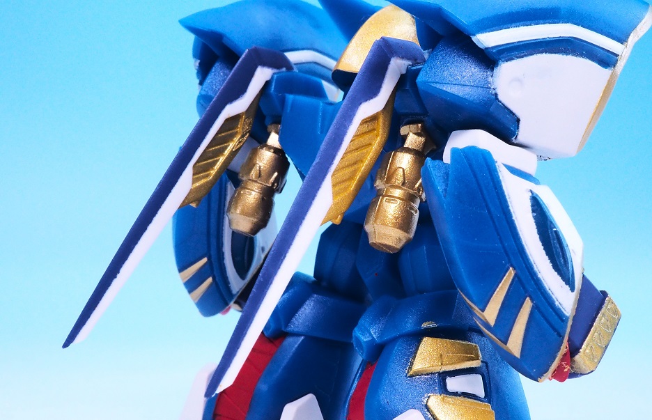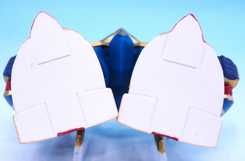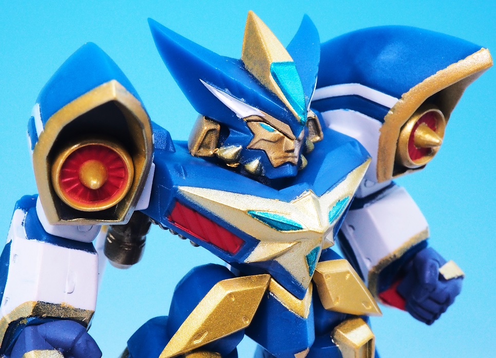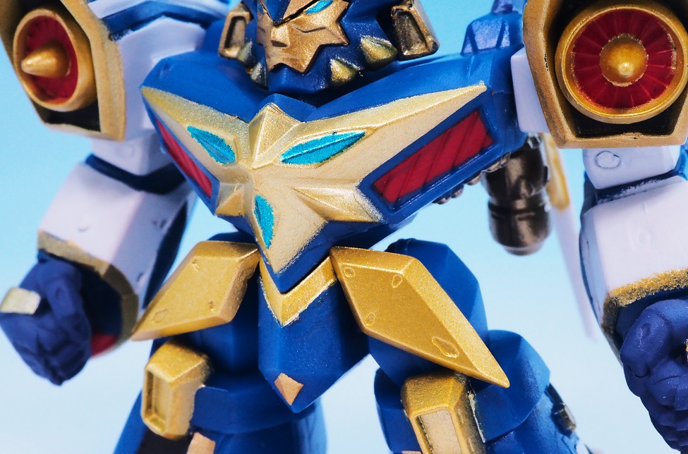 肩アーマーのブルーやゴールドも再現されていますが、やっぱりアップで見ると塗装のはみ出しが気になりますね。